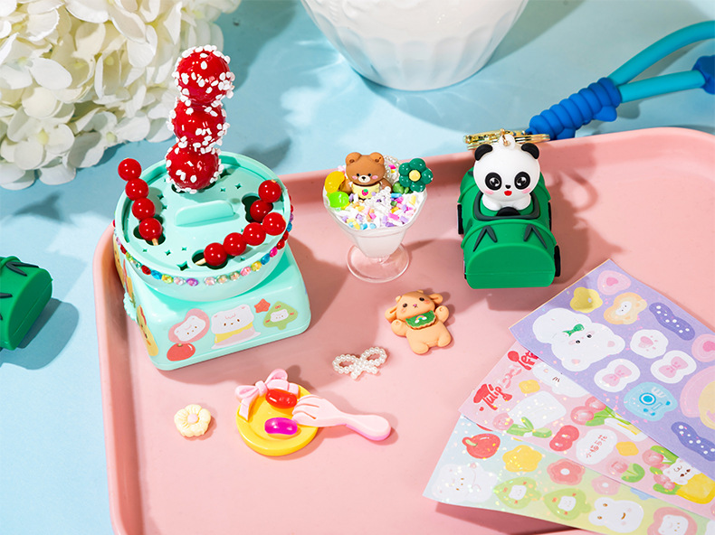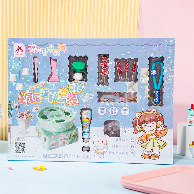 DIY 솜사탕 기계 세트 어린이 크림 접착제 스티커 장난감 놀이 집 가구 수제 재료 패키지 도매스토어 가기