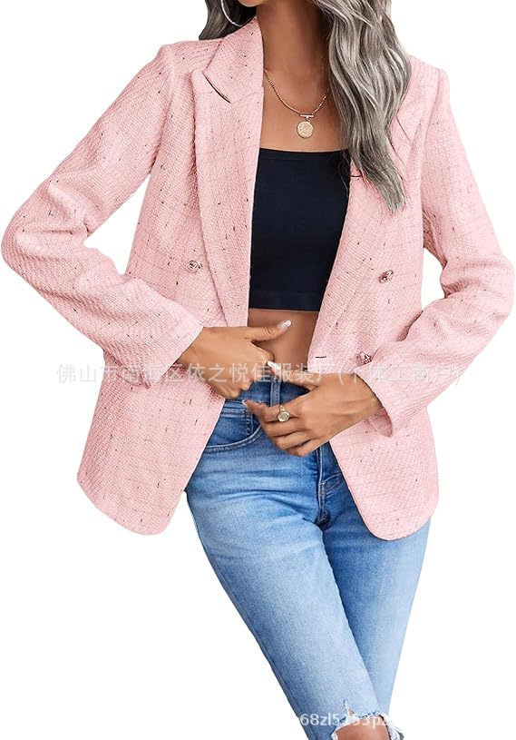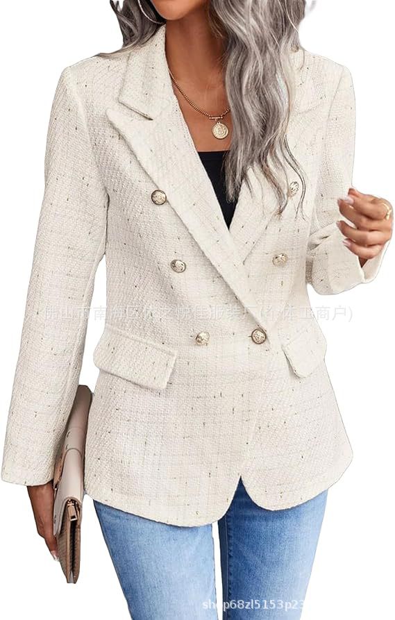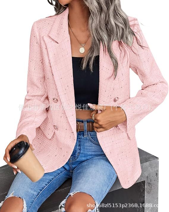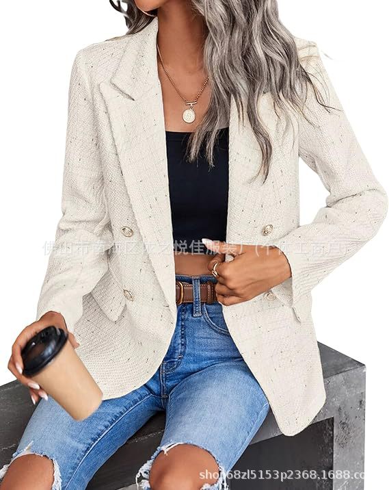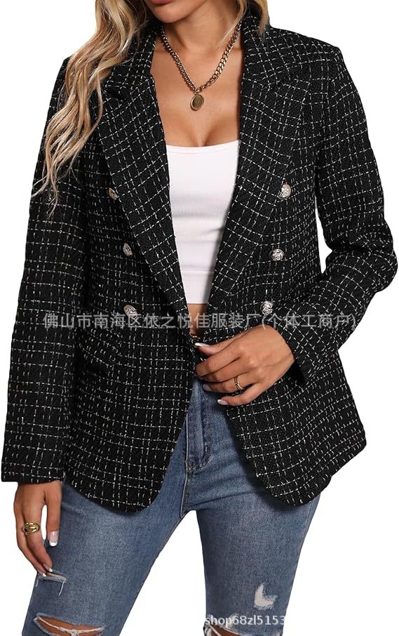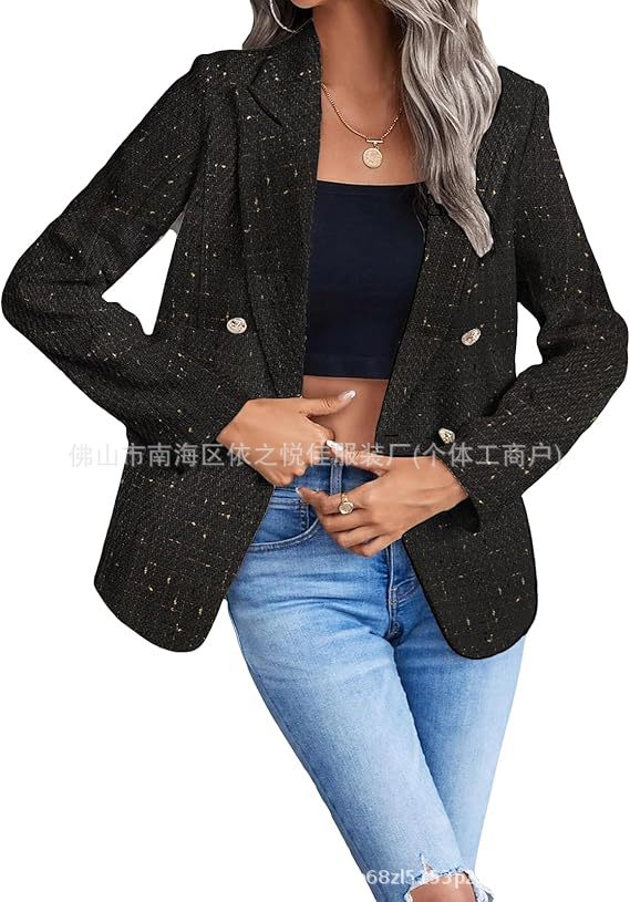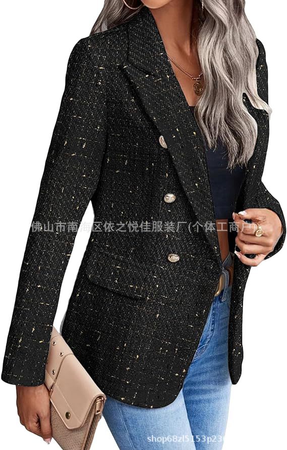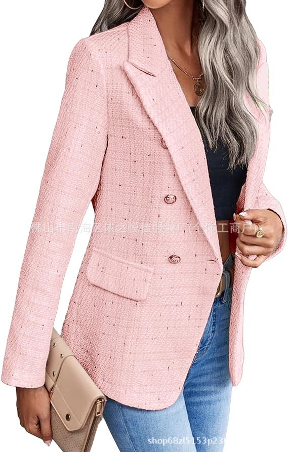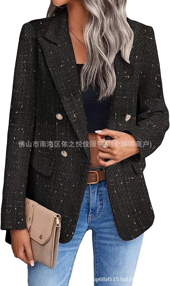 아마존 국경 2024 새로운 유럽과 미국의 가을 여성 트위드 세트 재킷 패션 캐주얼 재킷 포켓스토어 가기