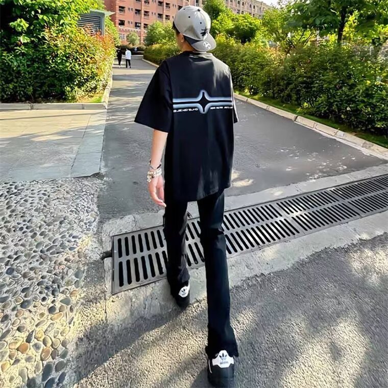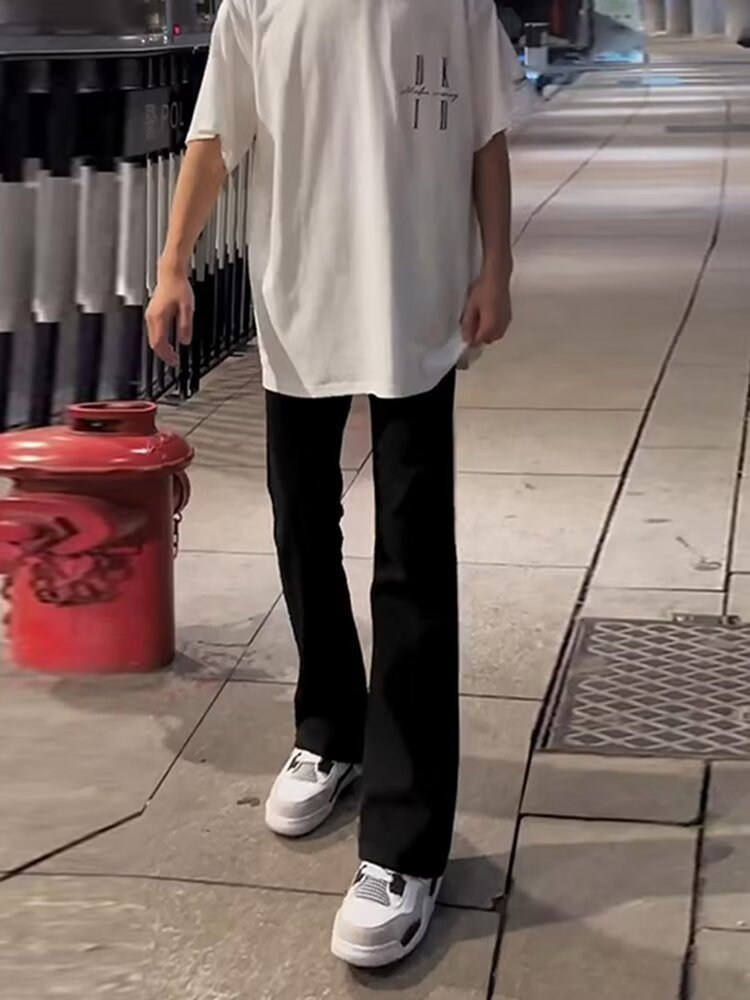 좁은 스트레이트 레그 청바지 남성 여름 아메리칸 스타일 하이 스트리트 바이브 마이크로 라가 롱 키 큰 슬림-핏 유니섹스 여성 바지