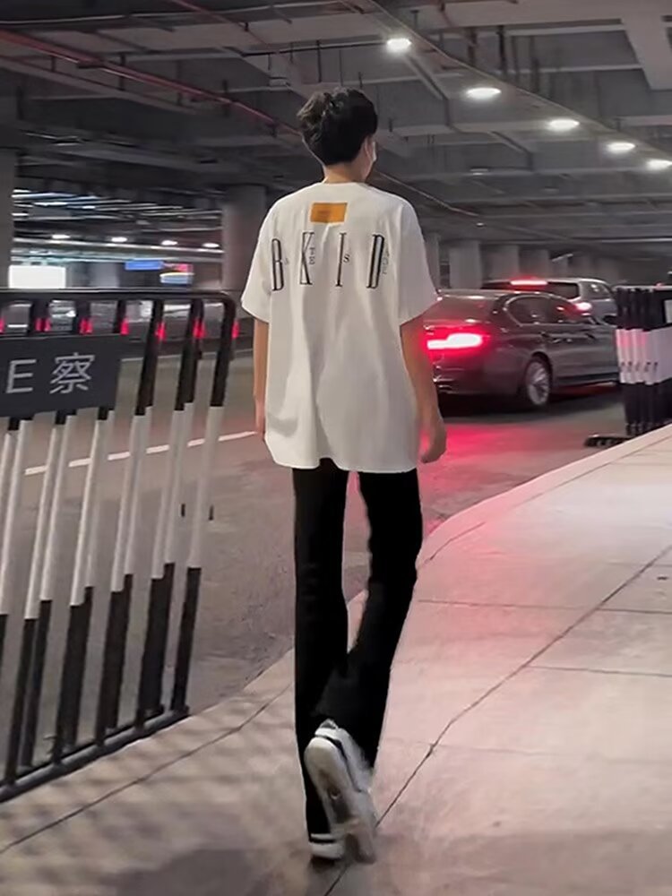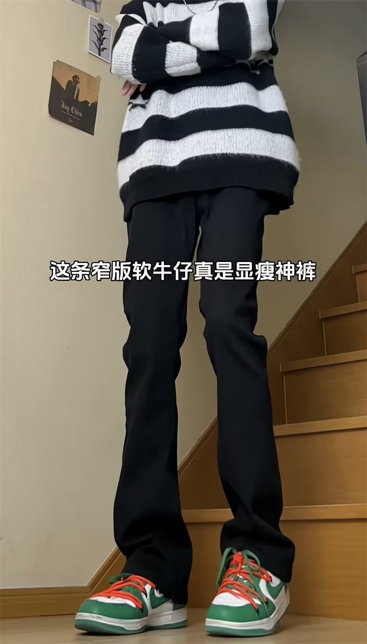 좁은 스트레이트 레그 청바지 남성 여름 아메리칸 스타일 하이 스트리트 바이브 마이크로 라가 롱 키 큰 슬림-핏 유니섹스 여성 바지스토어 가기