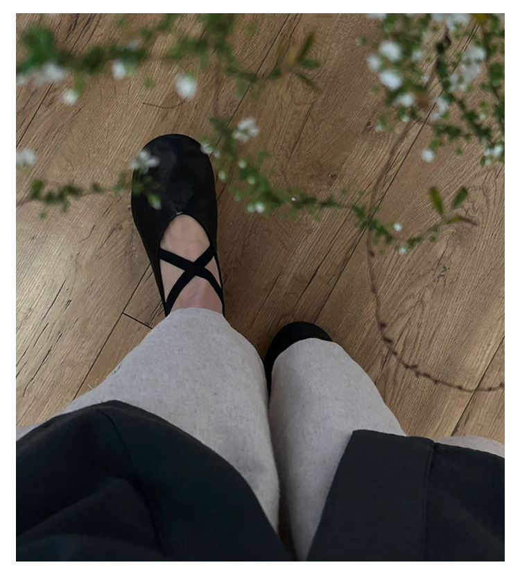 Cowhide 버전 ~ 평평한 발레 슈즈와 둥근 머리 십자가 복고풍 검은 싱글 레이어 슈즈 여성의 낮은 입 메리 제인 작은 가죽 신발스토어 가기