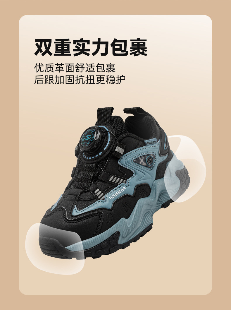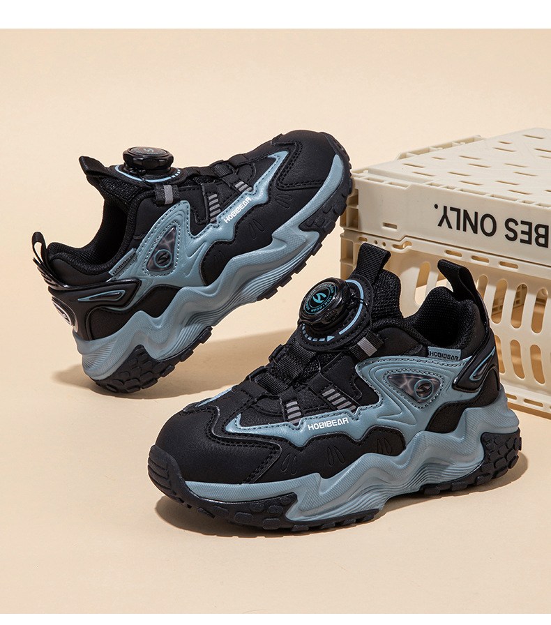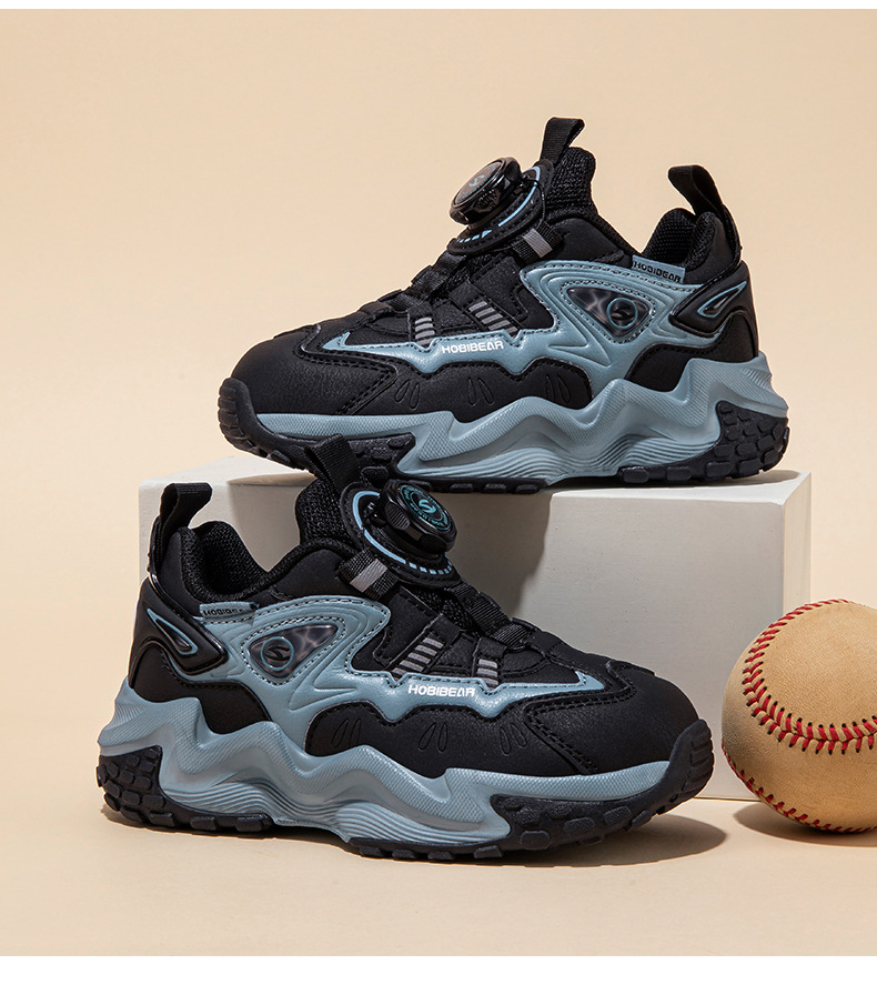 HOBIBEAR 가죽 가을 소년 운동화 회전 버튼 신발 가죽 소녀 아버지 신발 머리카락 세대