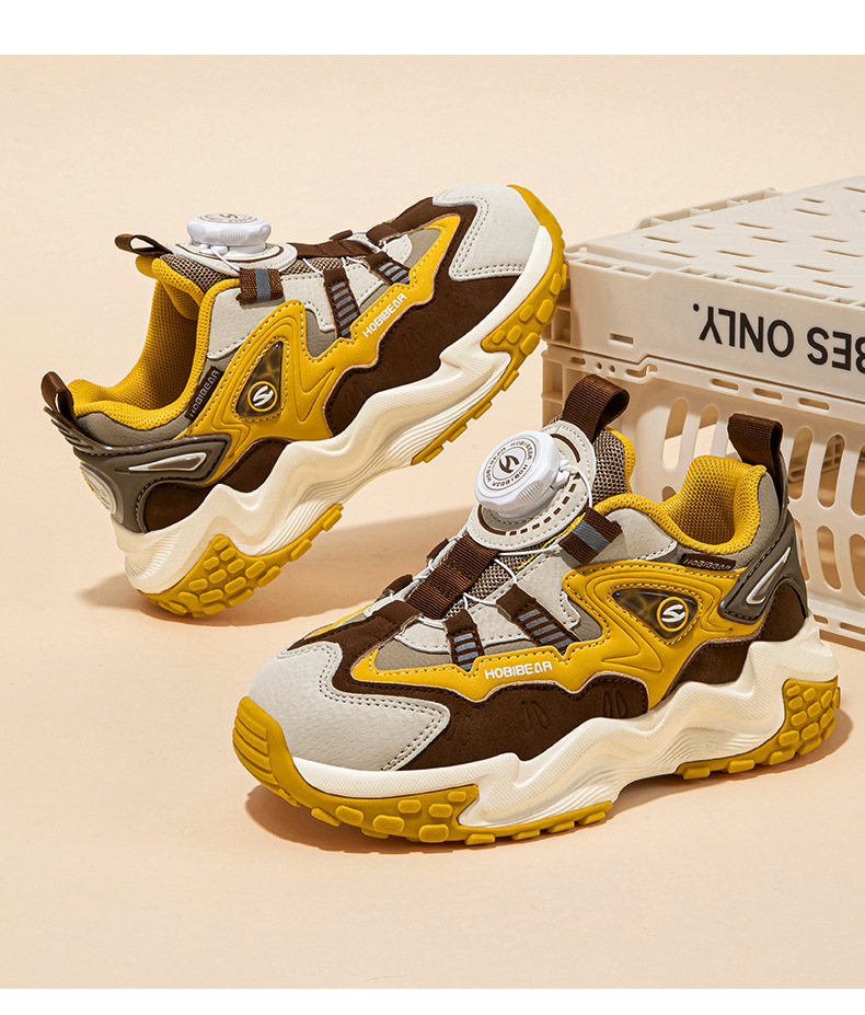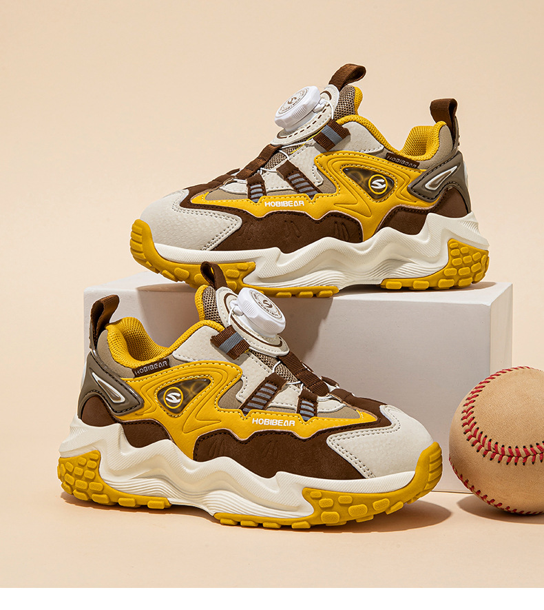 HOBIBEAR 가죽 가을 소년 운동화 회전 버튼 신발 가죽 소녀 아버지 신발 머리카락 세대스토어 가기