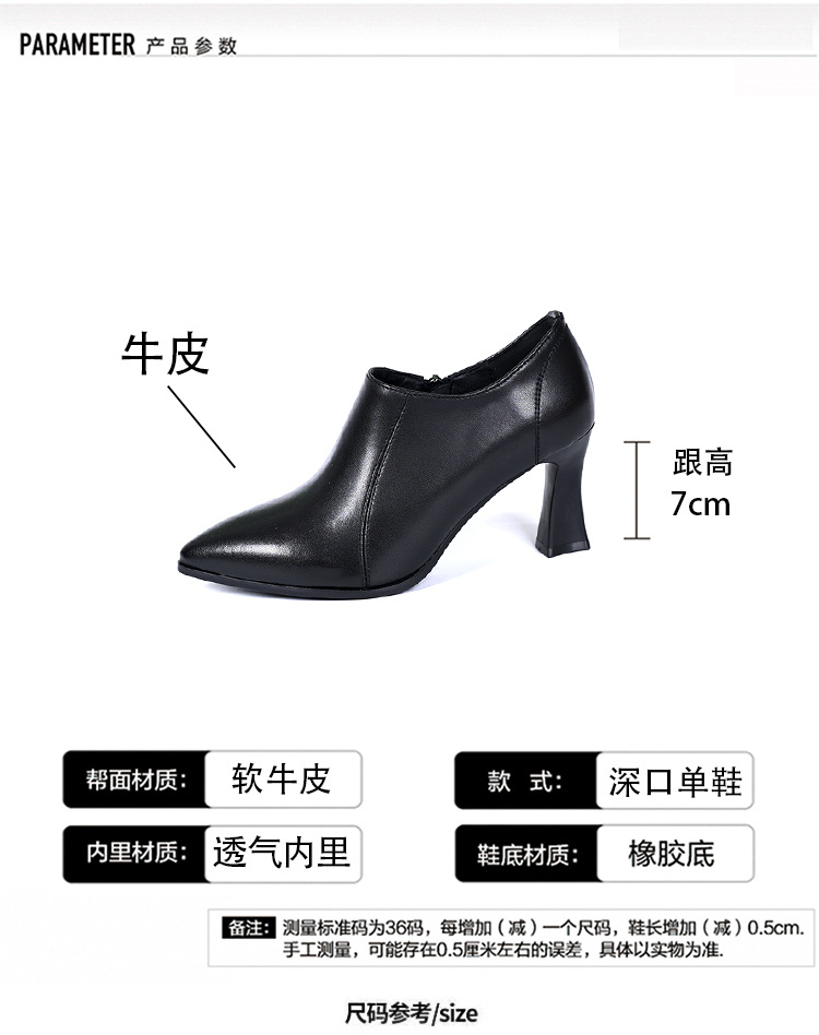 여성용 청키 힐 포인팅 신발 하이힐 사이드 지퍼 딥 입 가죽 신발 봄과 가을 직장 올 매치 여성 신발스토어 가기
