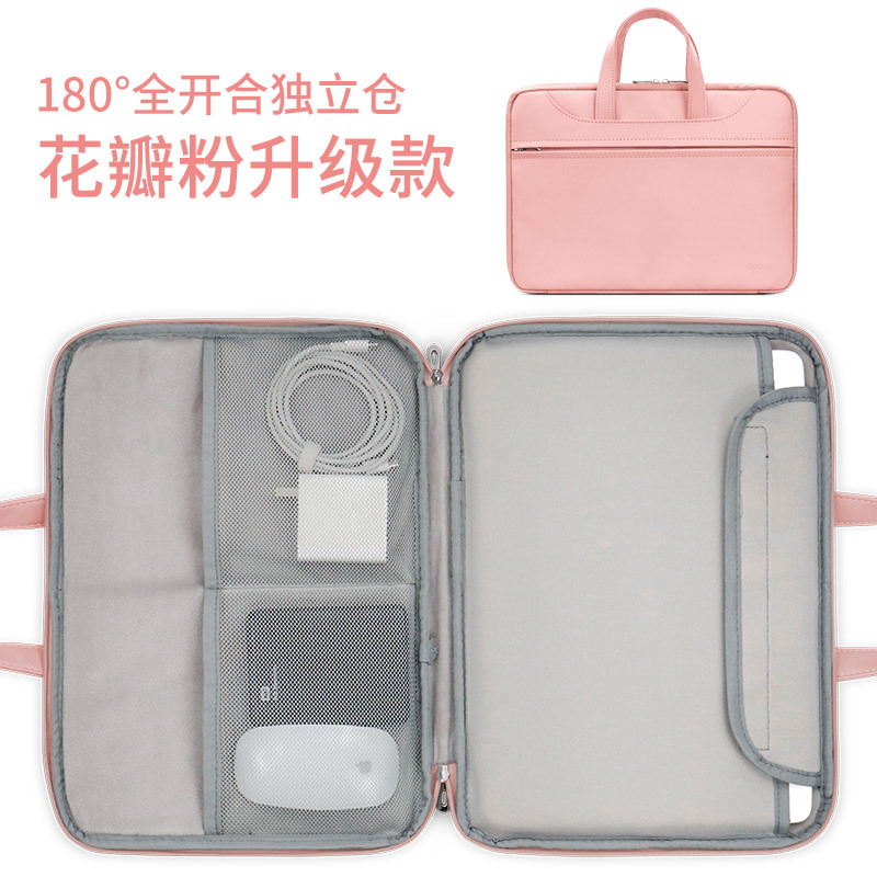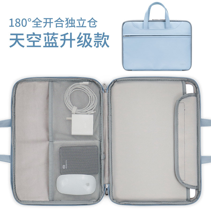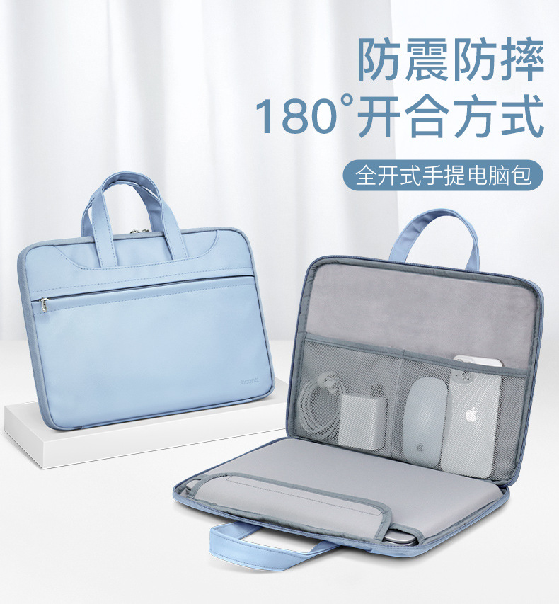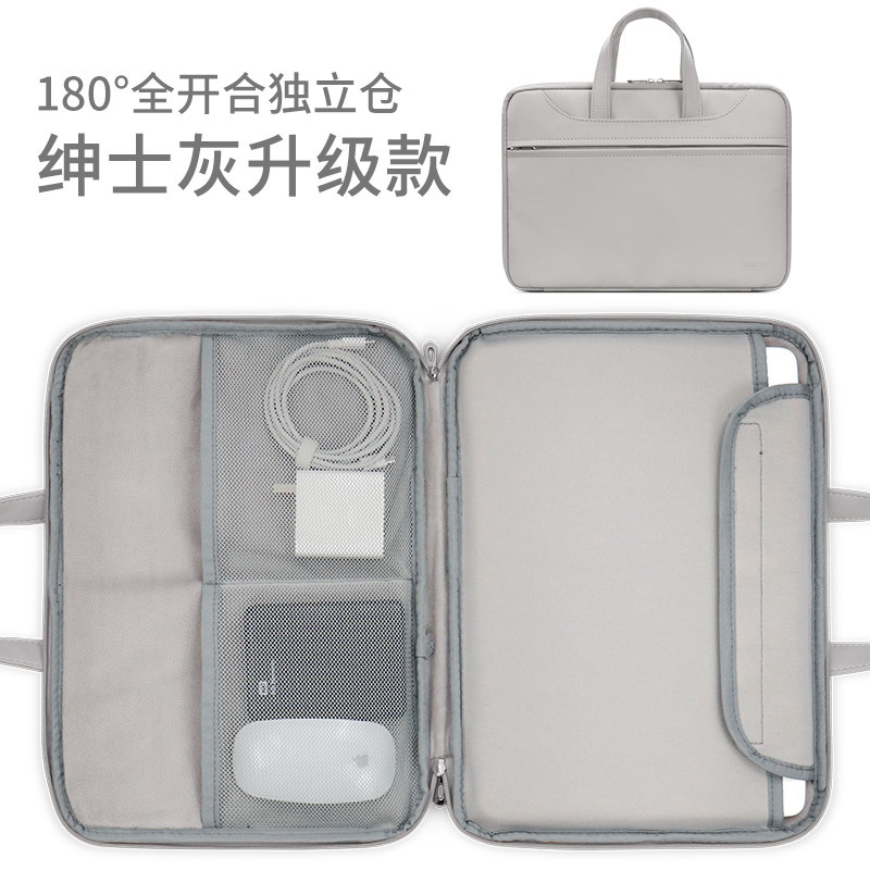 Apple Huawei Lenovo에 적합한 남성용 및 여성용 가죽 풀 오픈 휴대용 노트북 가방 서류 가방 포함스토어 가기