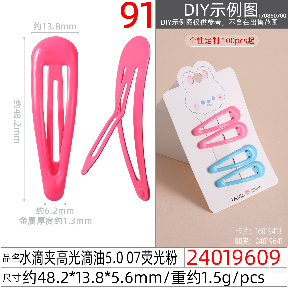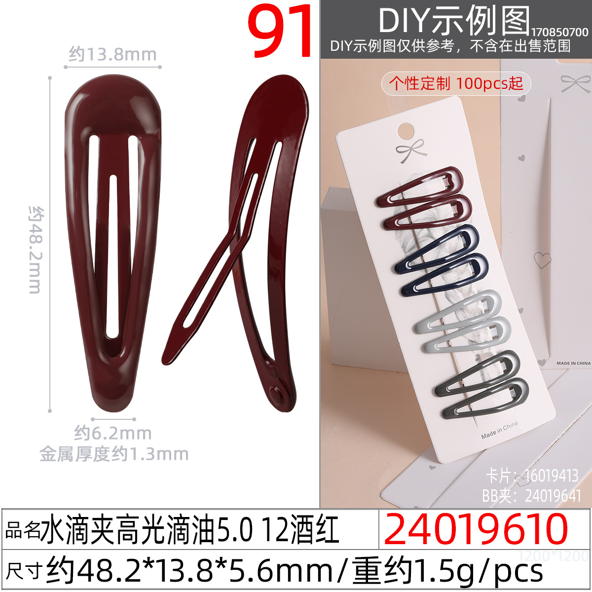 인터넷 빨간 머리 액세서리 여성의 귀여운 컬러 워터 드롭 헤어 클립 diy 한국 캔디 컬러 5cm 작은 머리 클립 적은 앞머리