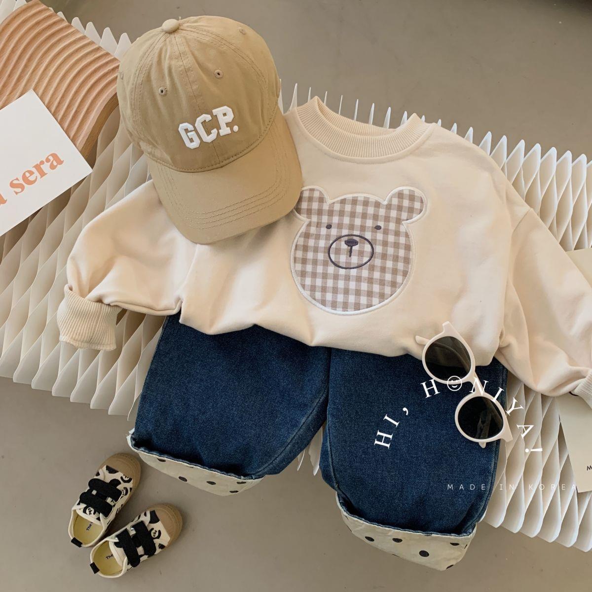 [핑크 집] 한팬걸스의 봄 · 가을 청바지 여성 아기 가을 웨이브 도트 콘트라스트 컬러 엣지 소프트 왁스 청바지