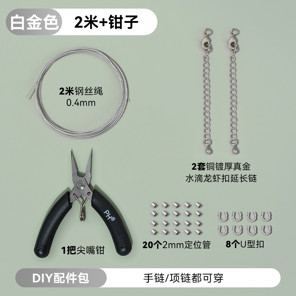 • 화이트 골드 포지셔닝 튜브 U 자형 버클 확장 체인 [펜치 포함]