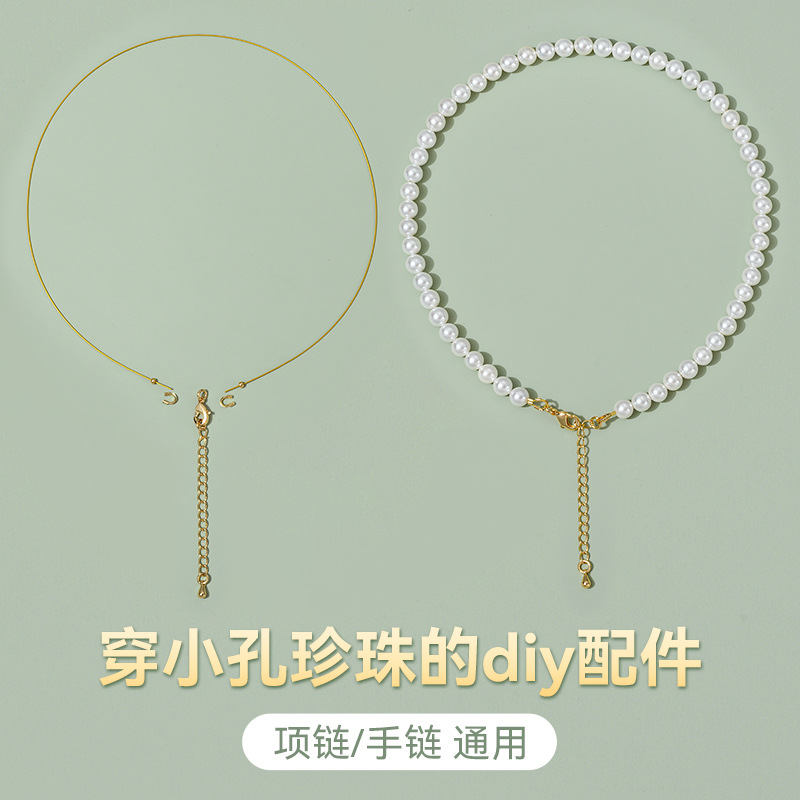 작은 구멍 진주 보석 액세서리 구슬 수제 DIY 소재 가방 손 목걸이 연장 체인 14k 골드 와이어 착용스토어 가기