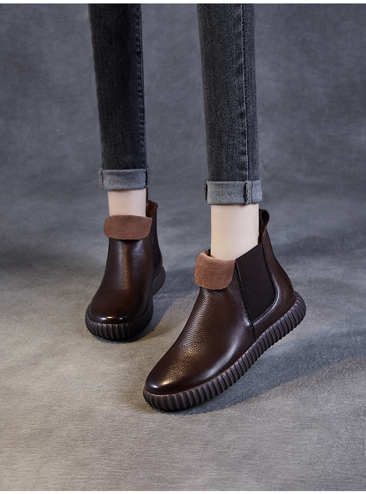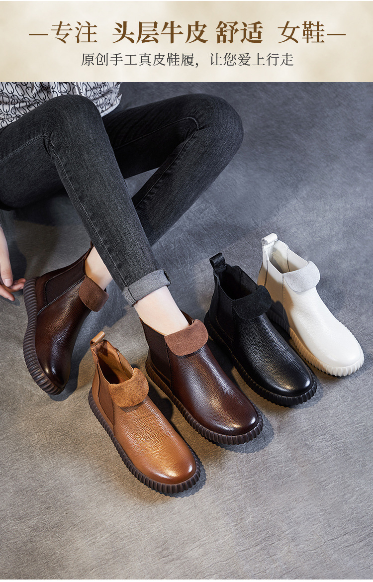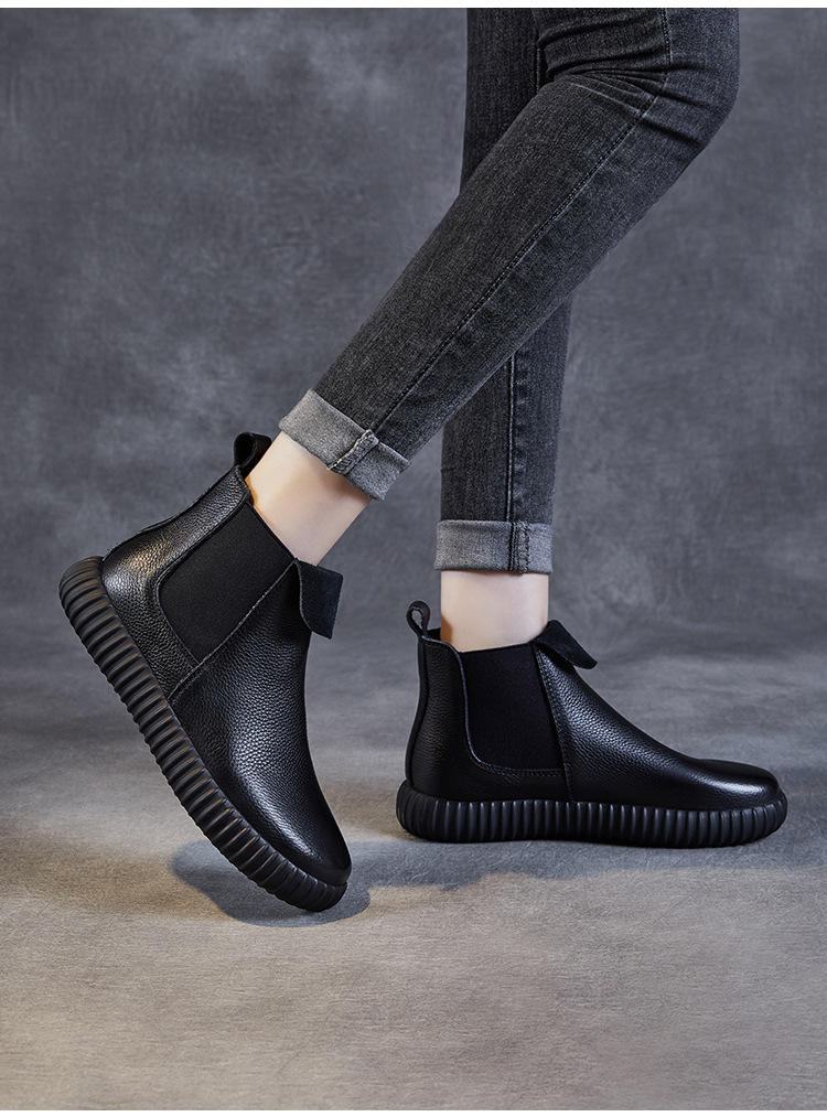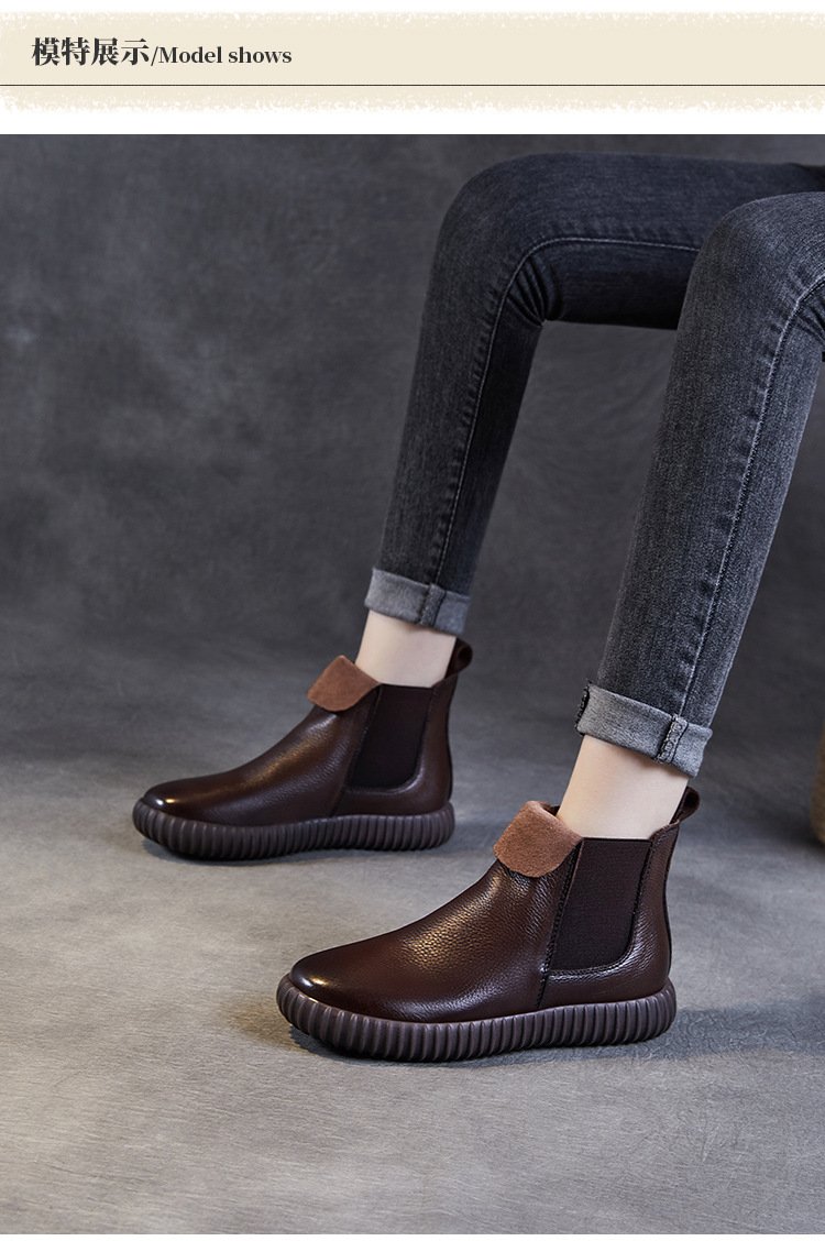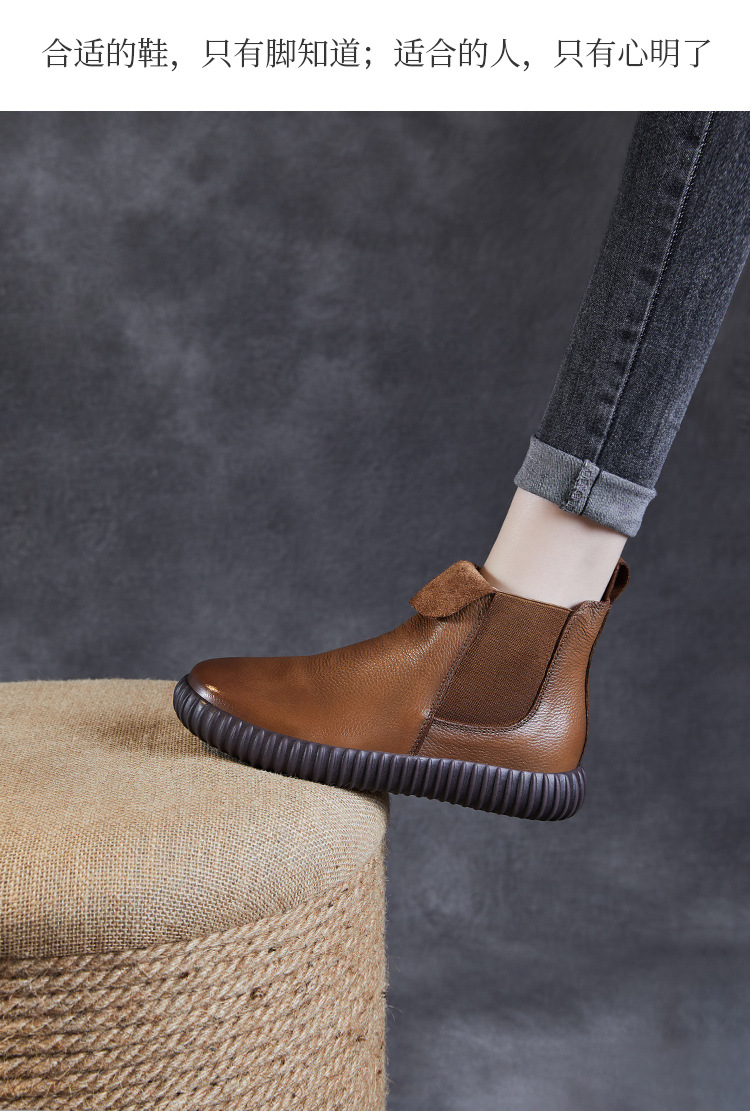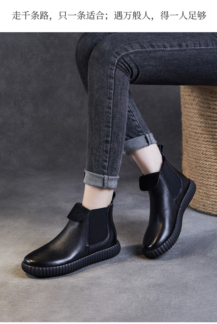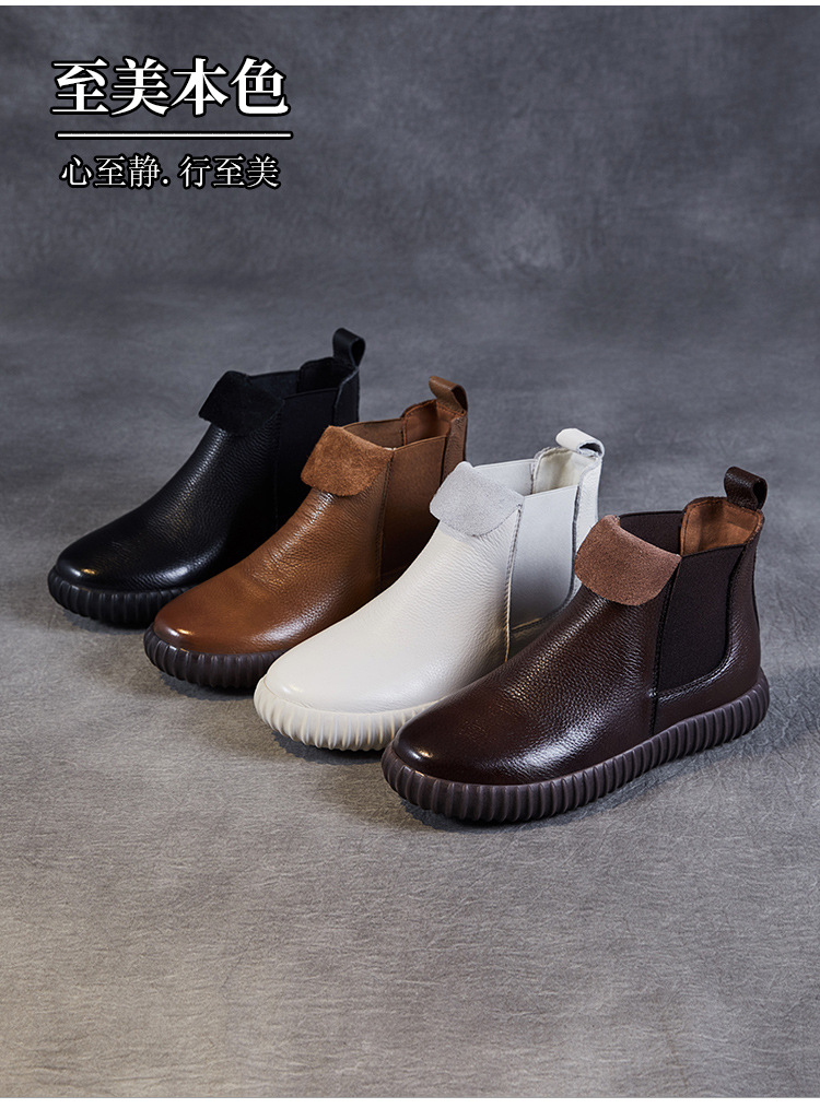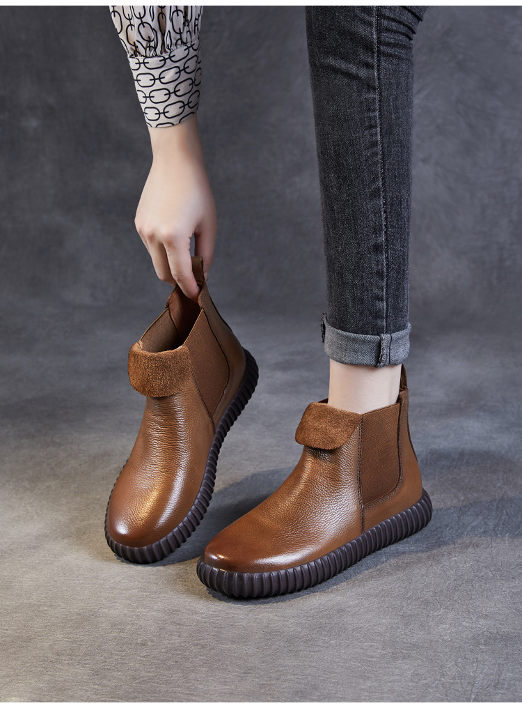 정품 가죽 플랫 첼시 발목 부츠 여성의 2024 가을 새로운 소프트 바닥 마틴 부츠 Cowhide 빈티지 하이 탑 가죽 싱글 부츠스토어 가기