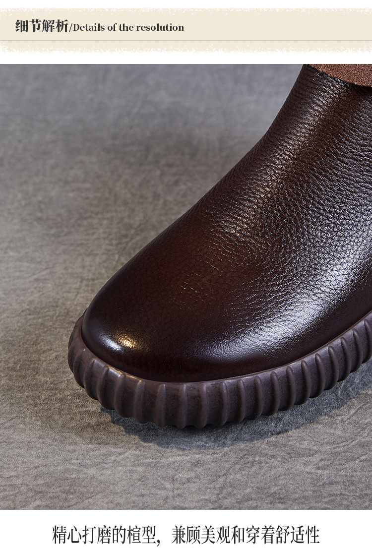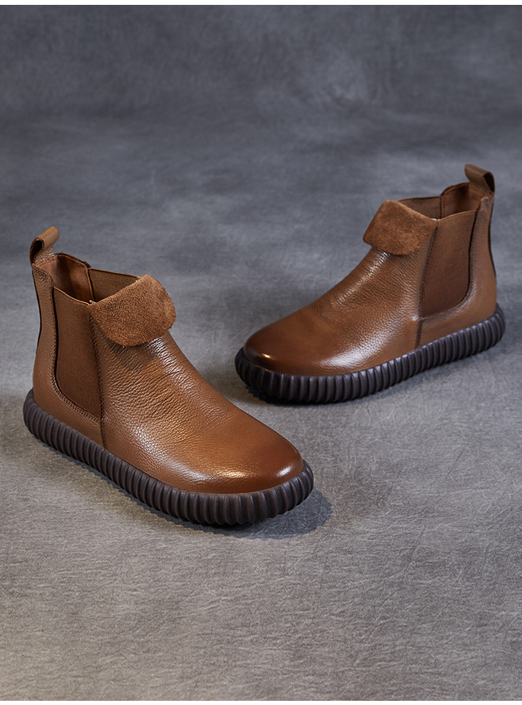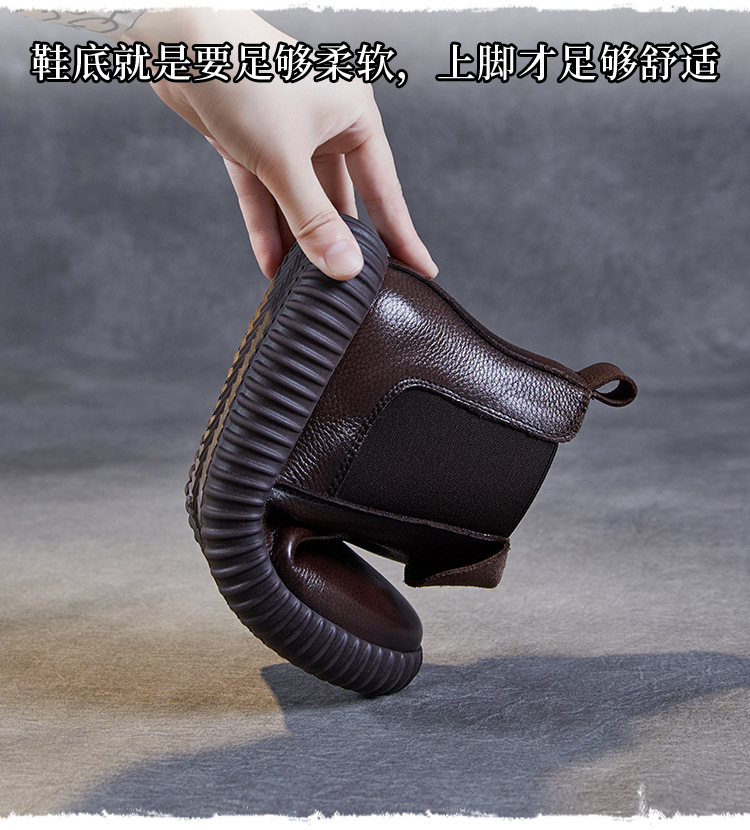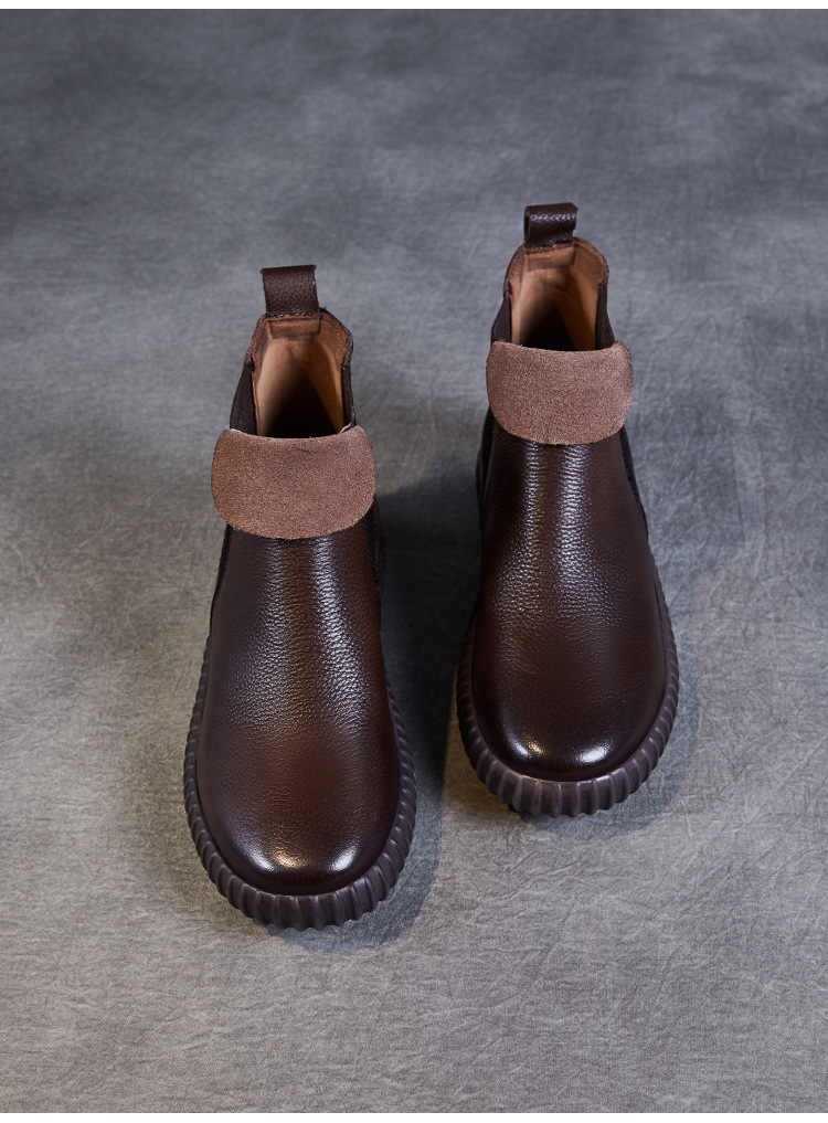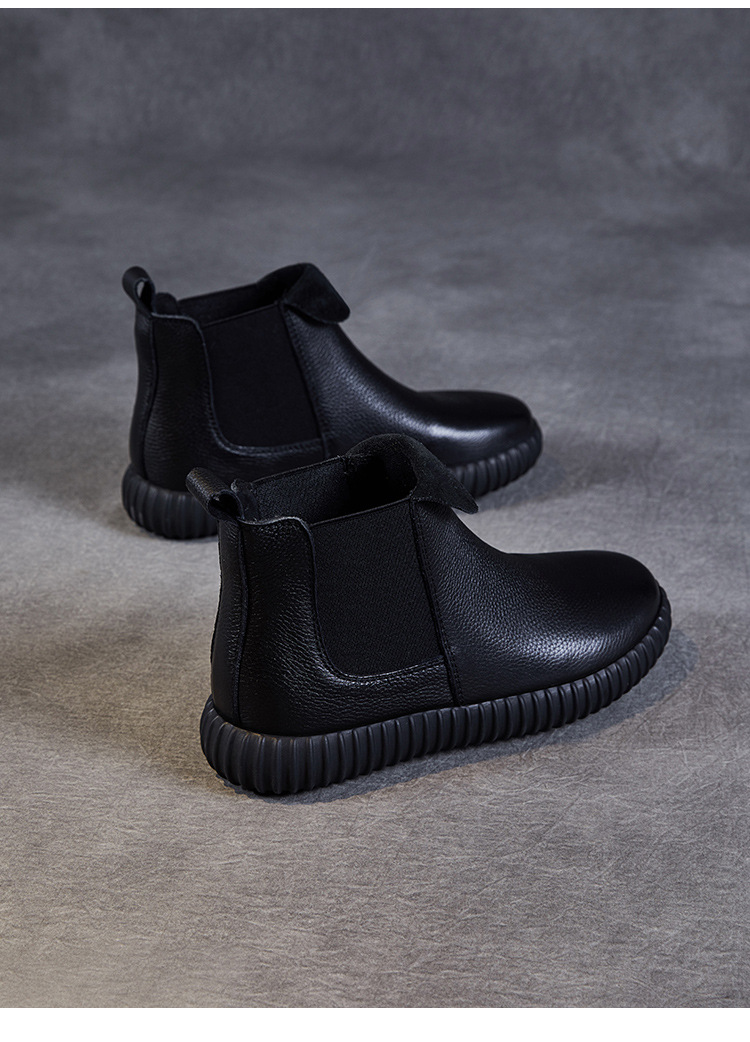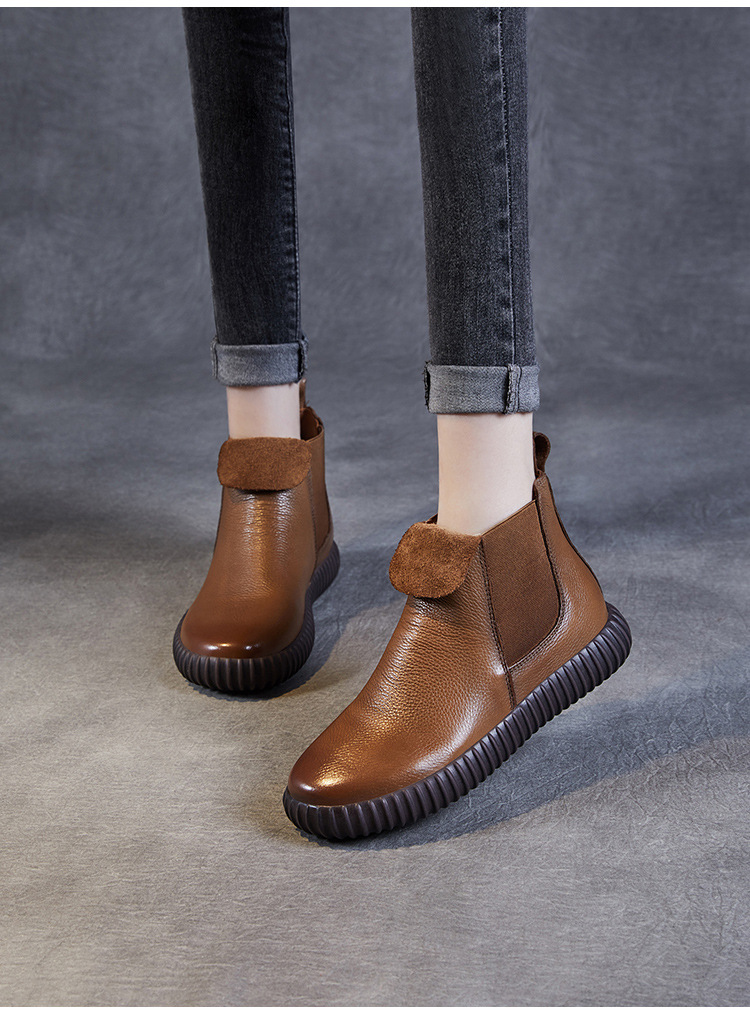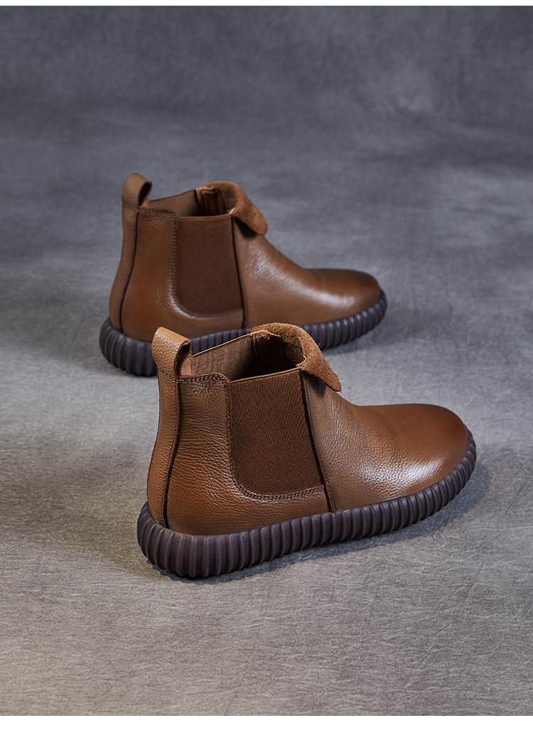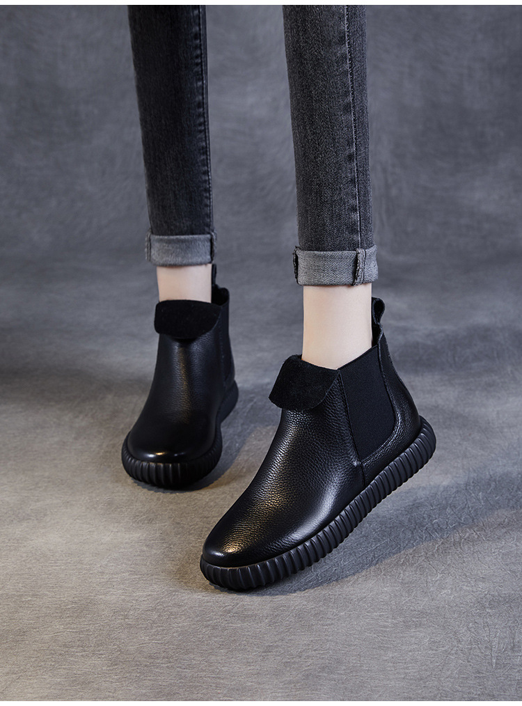 정품 가죽 플랫 첼시 발목 부츠 여성의 2024 가을 새로운 소프트 바닥 마틴 부츠 Cowhide 빈티지 하이 탑 가죽 싱글 부츠스토어 가기
