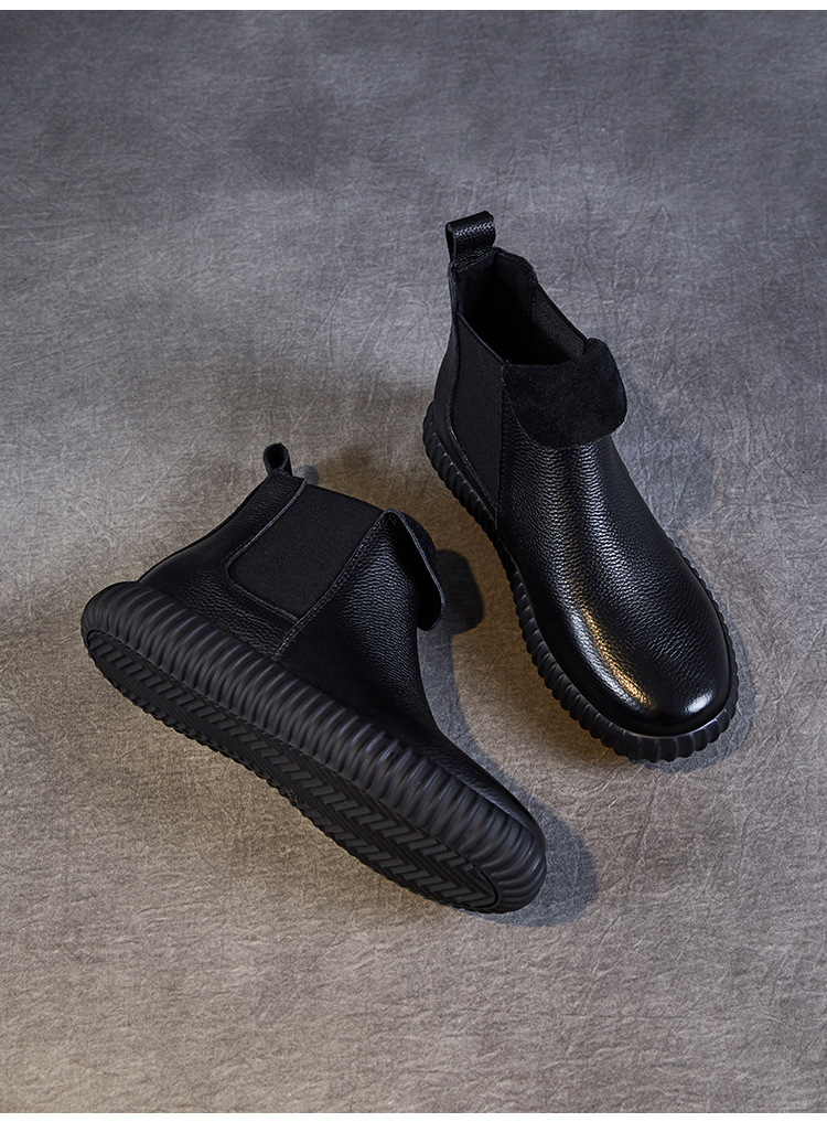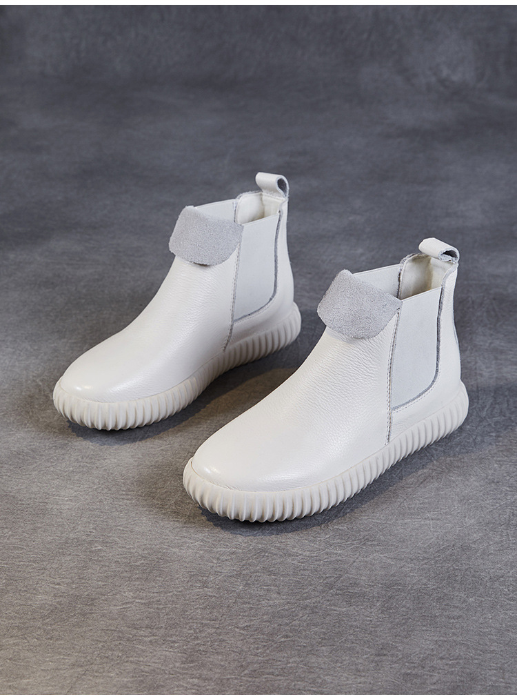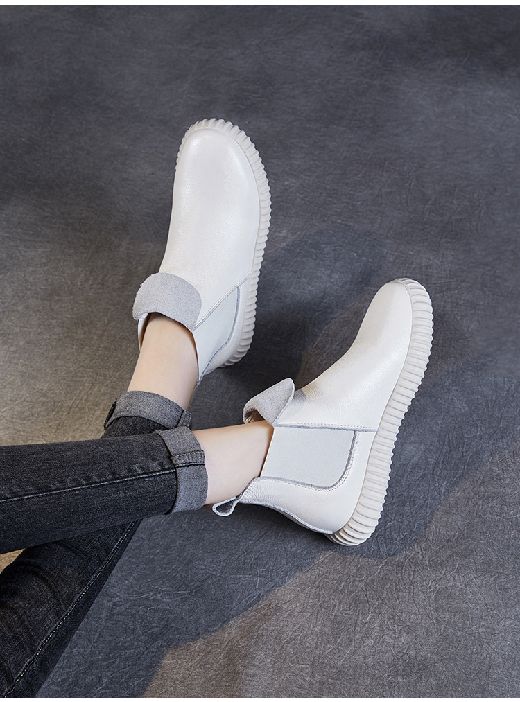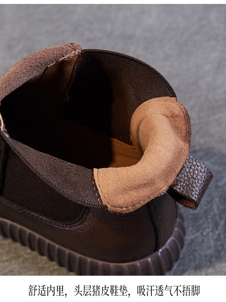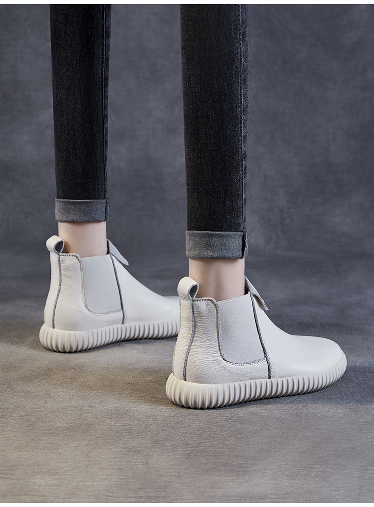 정품 가죽 플랫 첼시 발목 부츠 여성의 2024 가을 새로운 소프트 바닥 마틴 부츠 Cowhide 빈티지 하이 탑 가죽 싱글 부츠