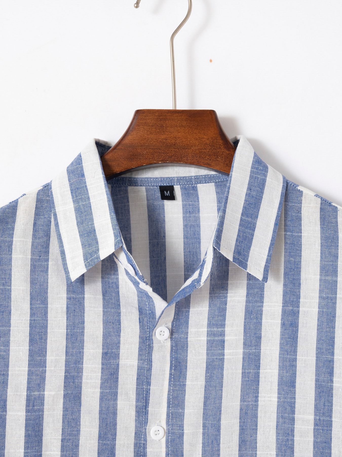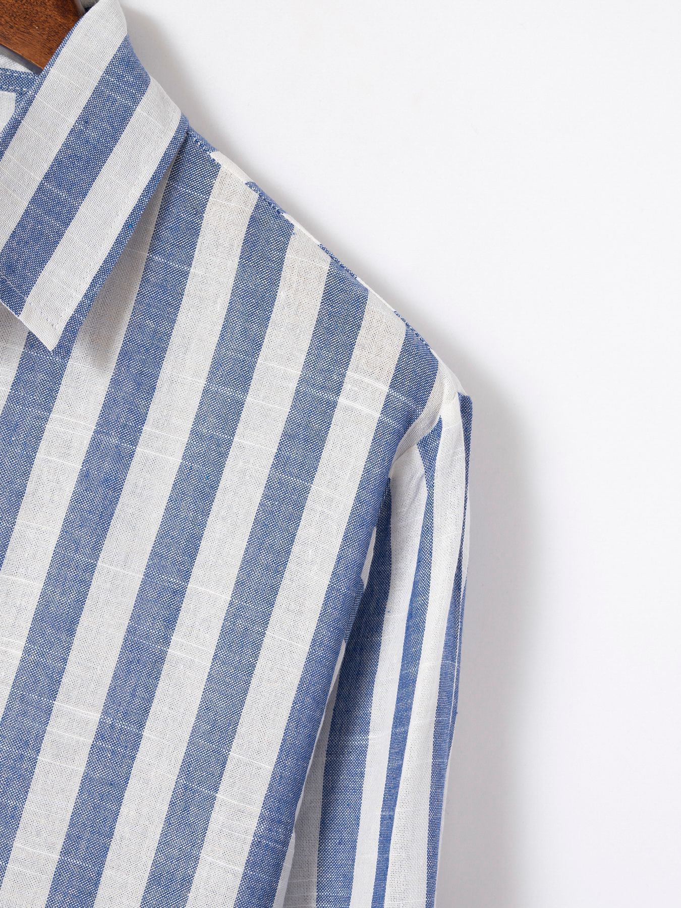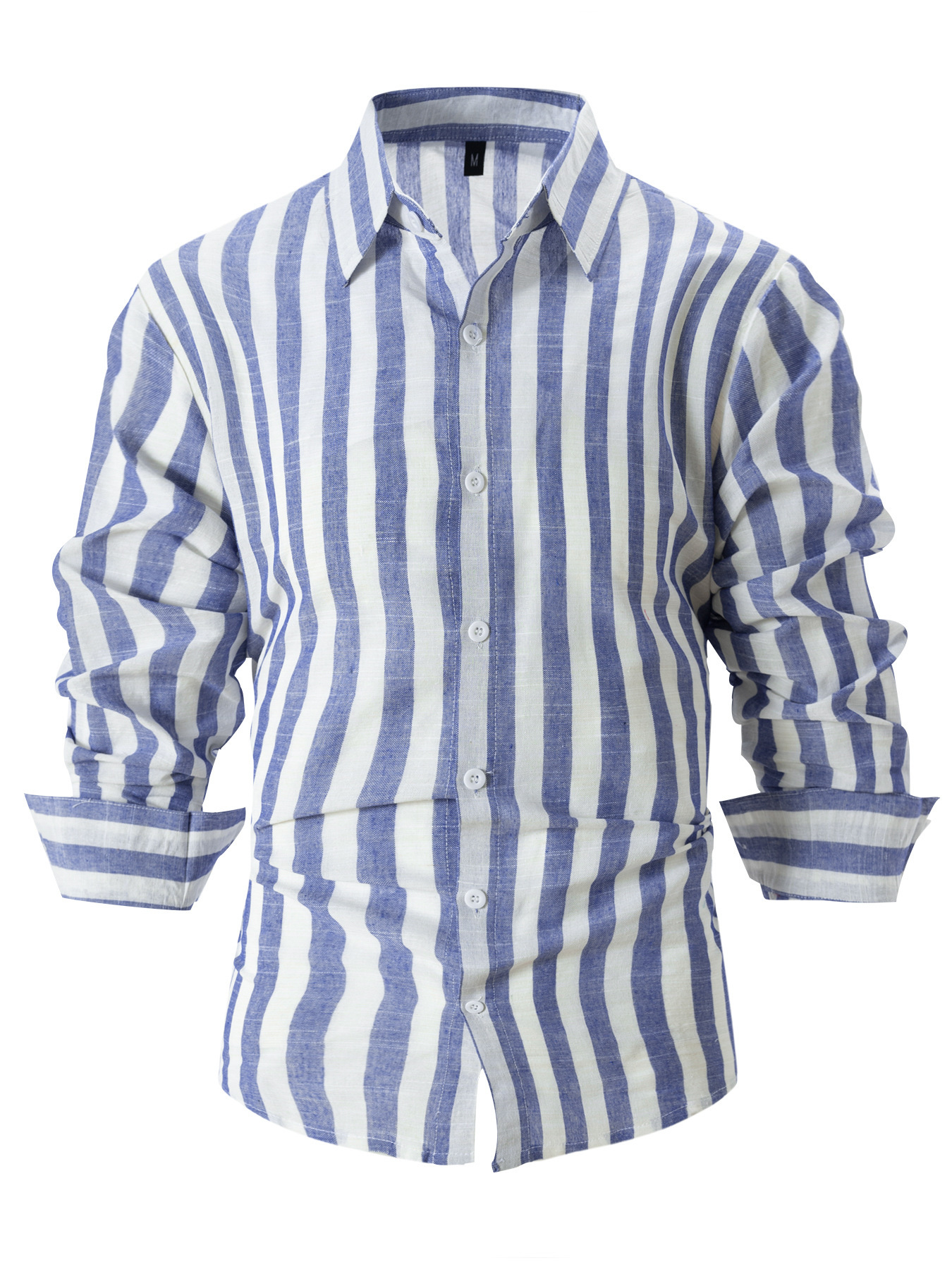고급 Amazon AliExpress Europe과 미국은 국경을 넘나 드는 새로운 남성 원사 염색 스트라이프면과 린넨 캐주얼 느슨한 긴팔 셔츠