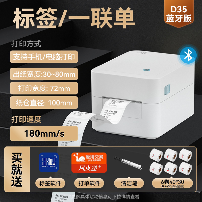 • 공식 표준 D35 Bluetooth 버전 80mm [컴퓨터/휴대폰 라벨 지원] + 무료 롤 용지 6개 + 알코올 펜