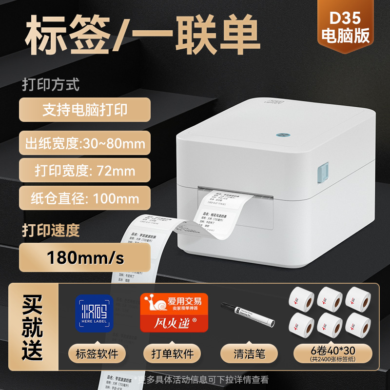 • 공식 표준 D35 컴퓨터 버전 80mm [컴퓨터 라벨 지원] + 무료 종이 롤 6개 + 알코올 펜