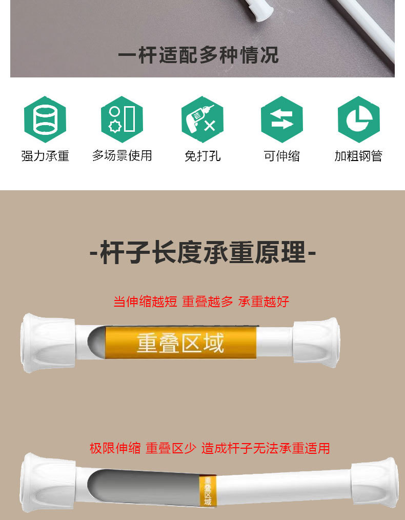 구멍이없는 텔레스코픽 로드 못없는 옷 건조로드 옷걸이 스테인레스 스틸 커튼 교수형 샤워 커튼 로드 도어 커튼 옷장 스트럿스토어 가기