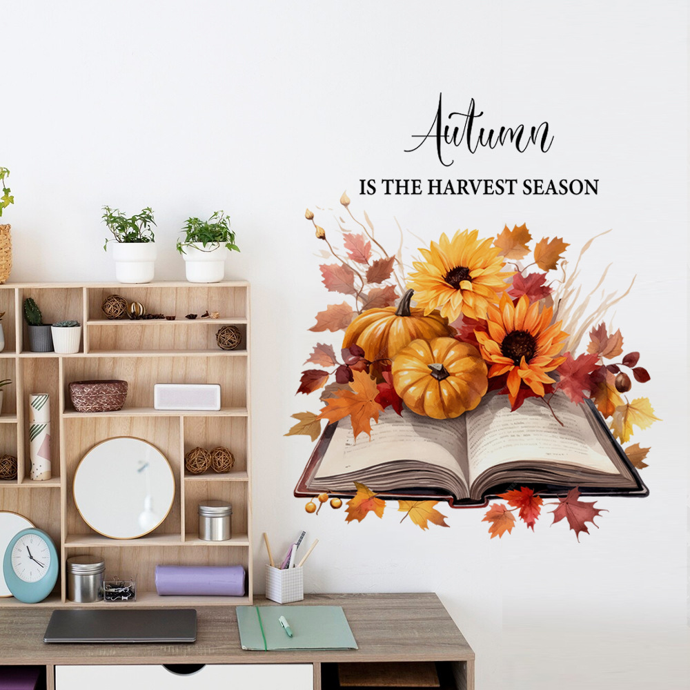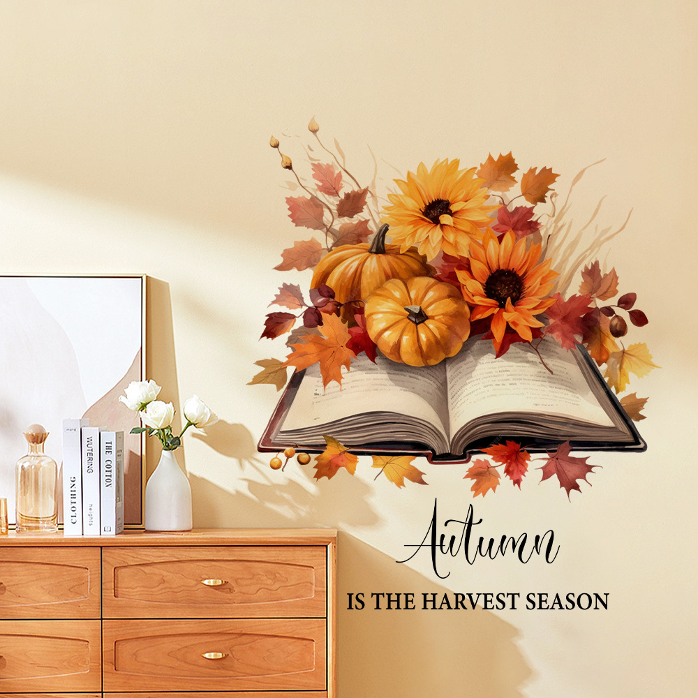 Yiyao DD3342 창조적 인 책 메이플 리프 호박 창조적 인 벽지 침실 거실 장식 뷰티 셀프 접착 벽 스티커스토어 가기