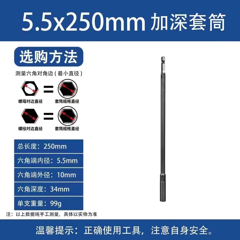 연장 된 슬리브 250MM 배치 헤드 전기 드릴 육각형 공기 배치 슬리브 헤드 공압 스크류 육각 너트 렌치 심화스토어 가기