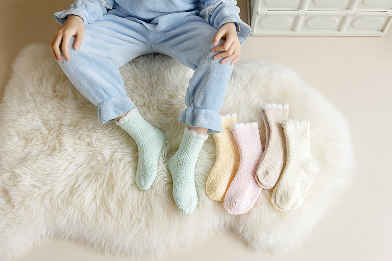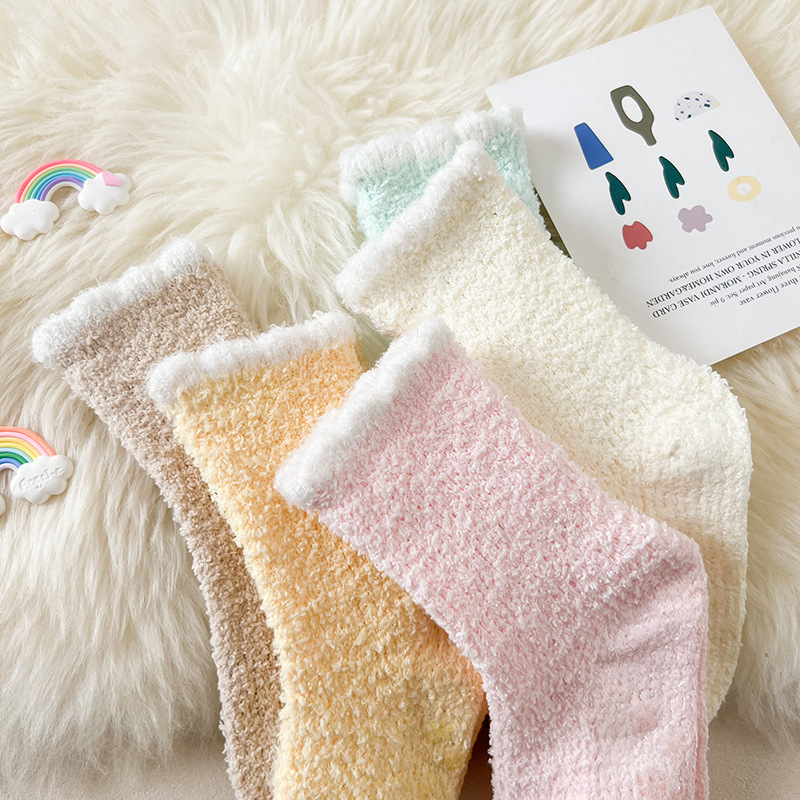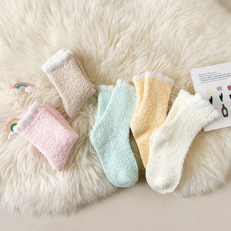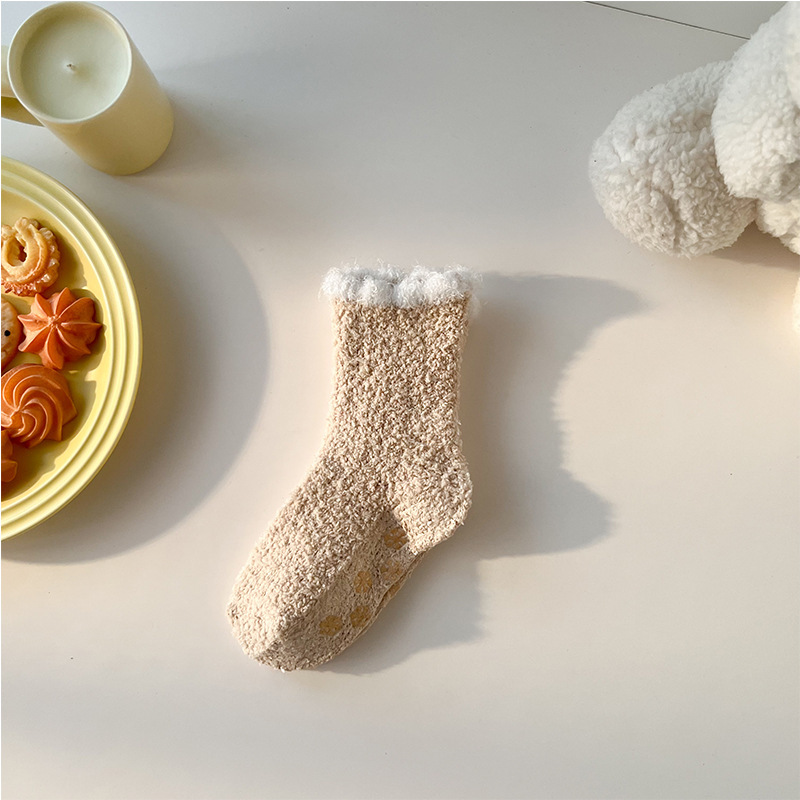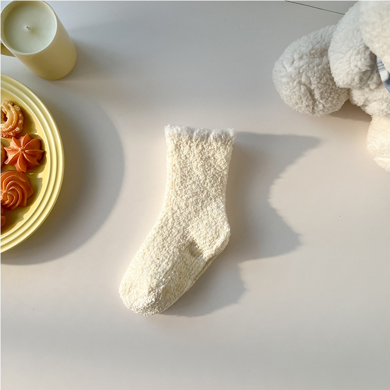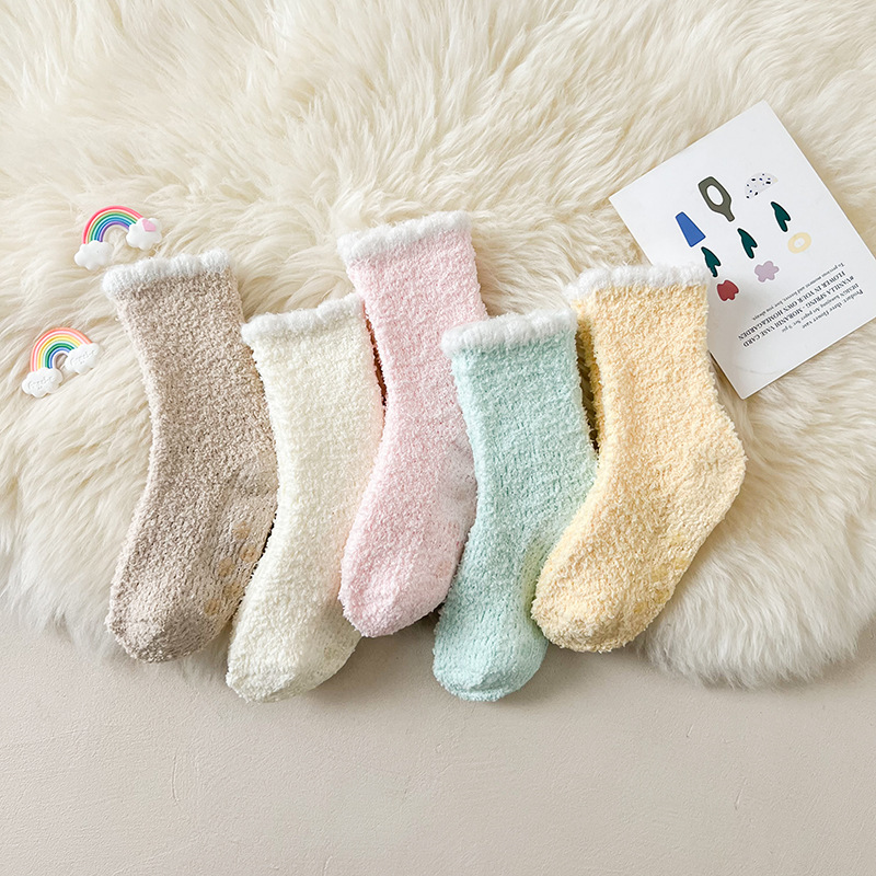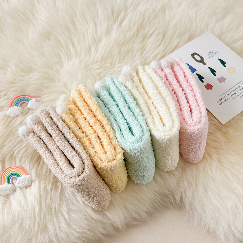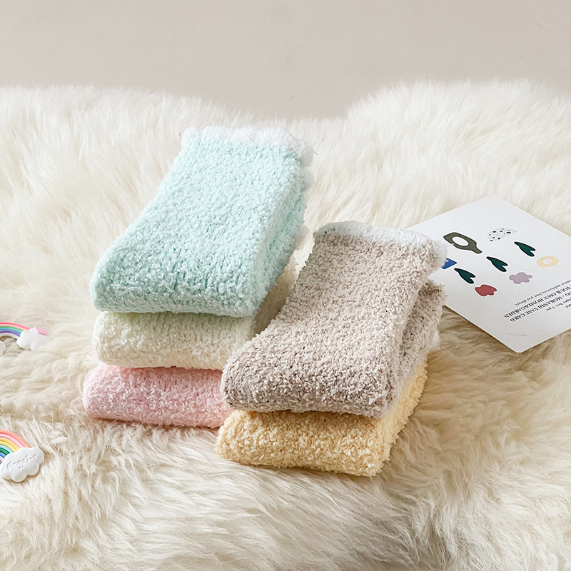 새로운 스타일 양말 여성의 가을과 겨울 기모 두꺼운 어린이 양말 겨울 따뜻한 바닥 양말 산호 양털 홈 바닥 양말