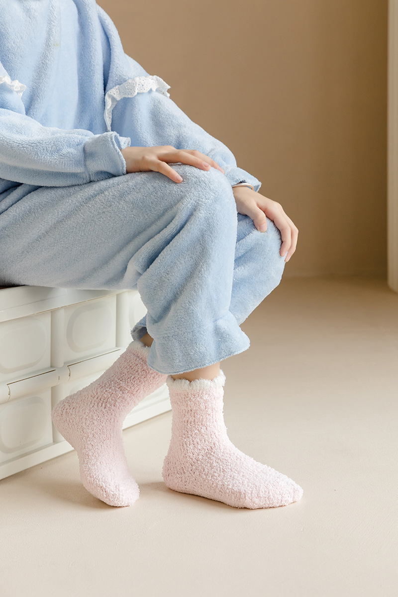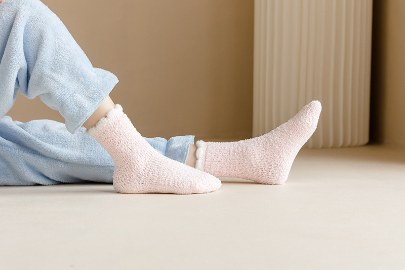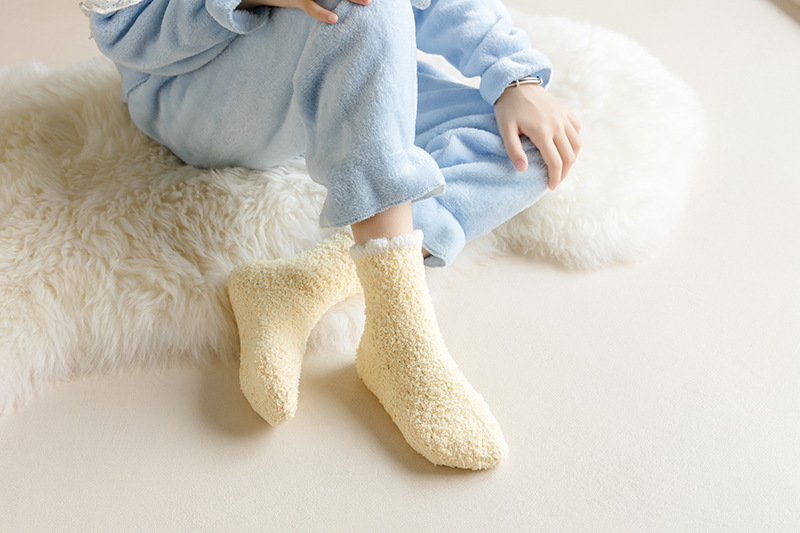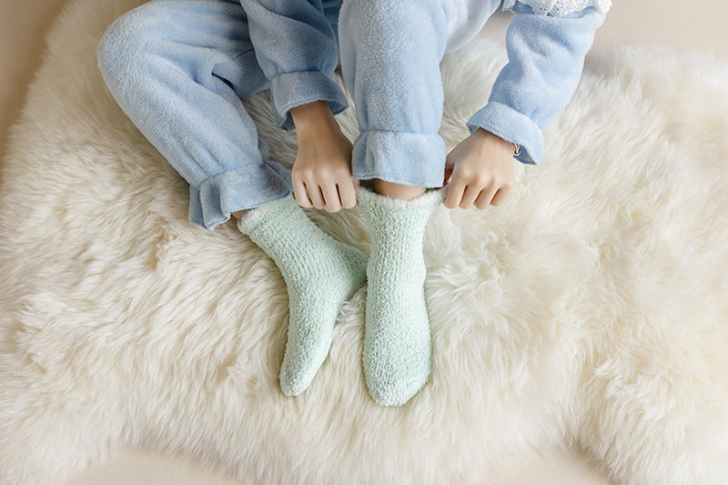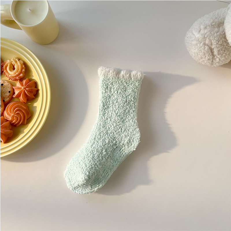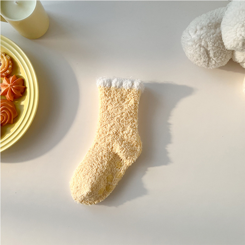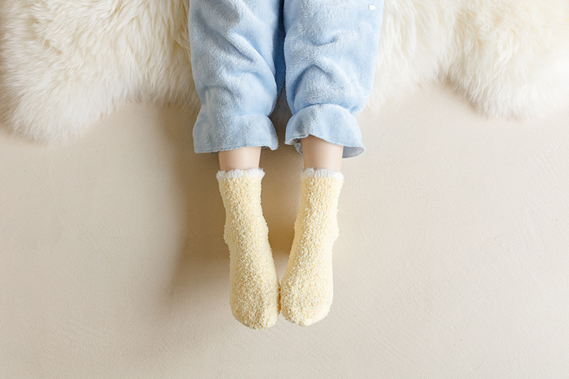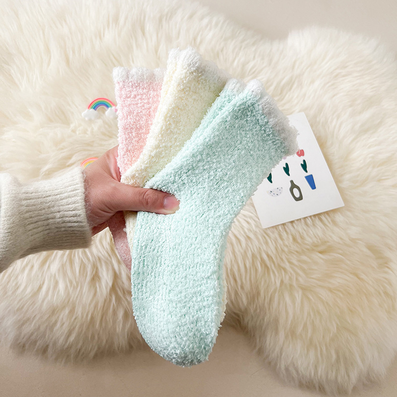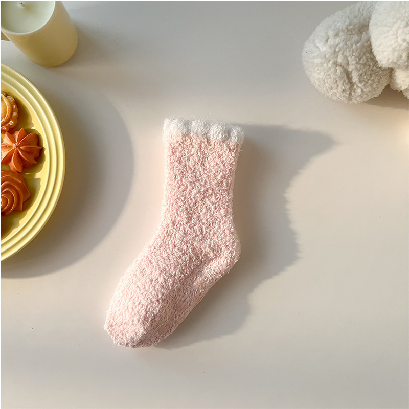 새로운 스타일 양말 여성의 가을과 겨울 기모 두꺼운 어린이 양말 겨울 따뜻한 바닥 양말 산호 양털 홈 바닥 양말