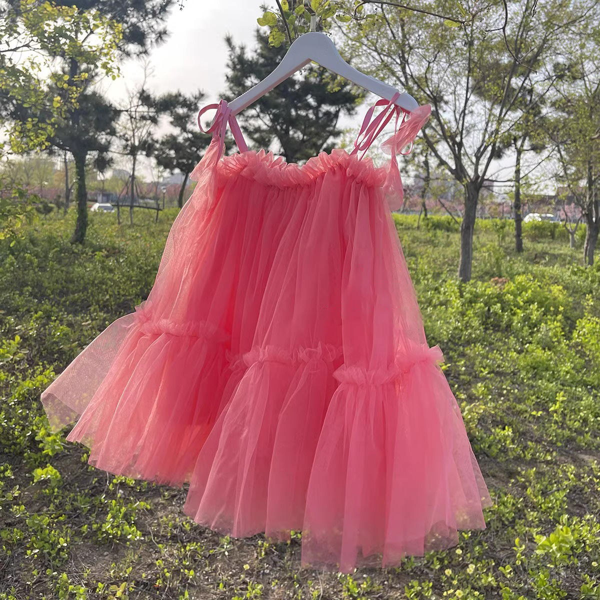 봄 어린이 돌복 순색 퍼프 스커트 심플 알리익스프레스 여자 아기 멜빵 원피스 조끼 드레스스토어 가기