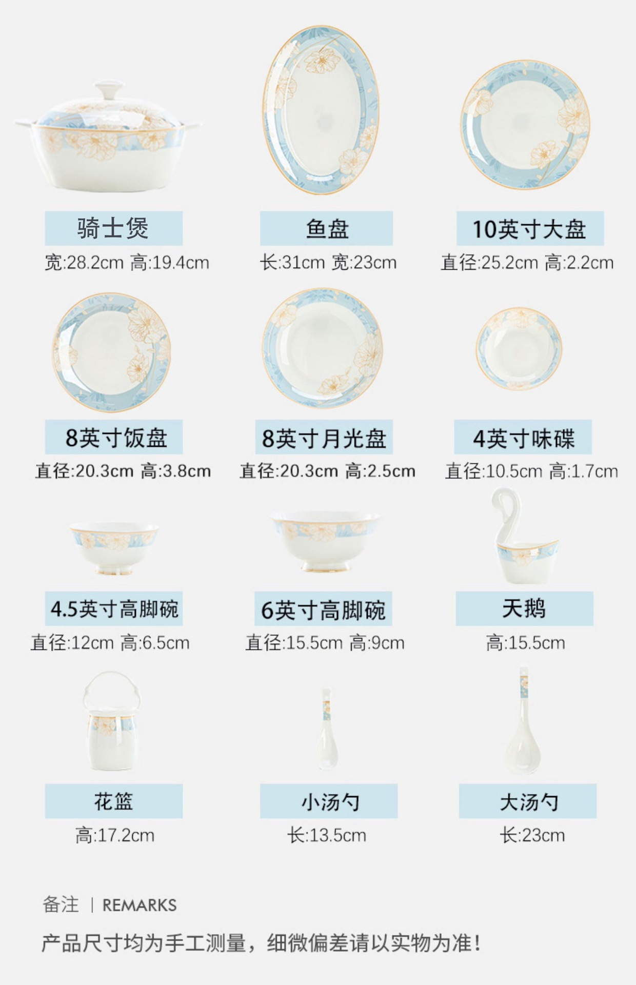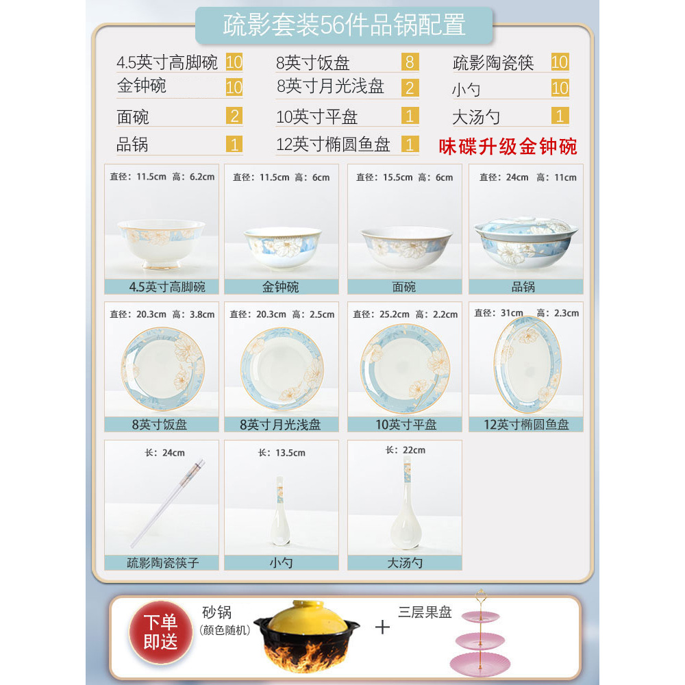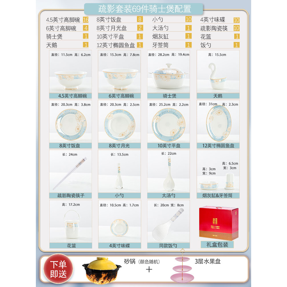 간단한 현대 가벼운 고급 요리와 요리 북유럽 창조적 인 Jingdezhen 세라믹 식기 세트 제공하는 세트 요리 및 요리 홈 선물