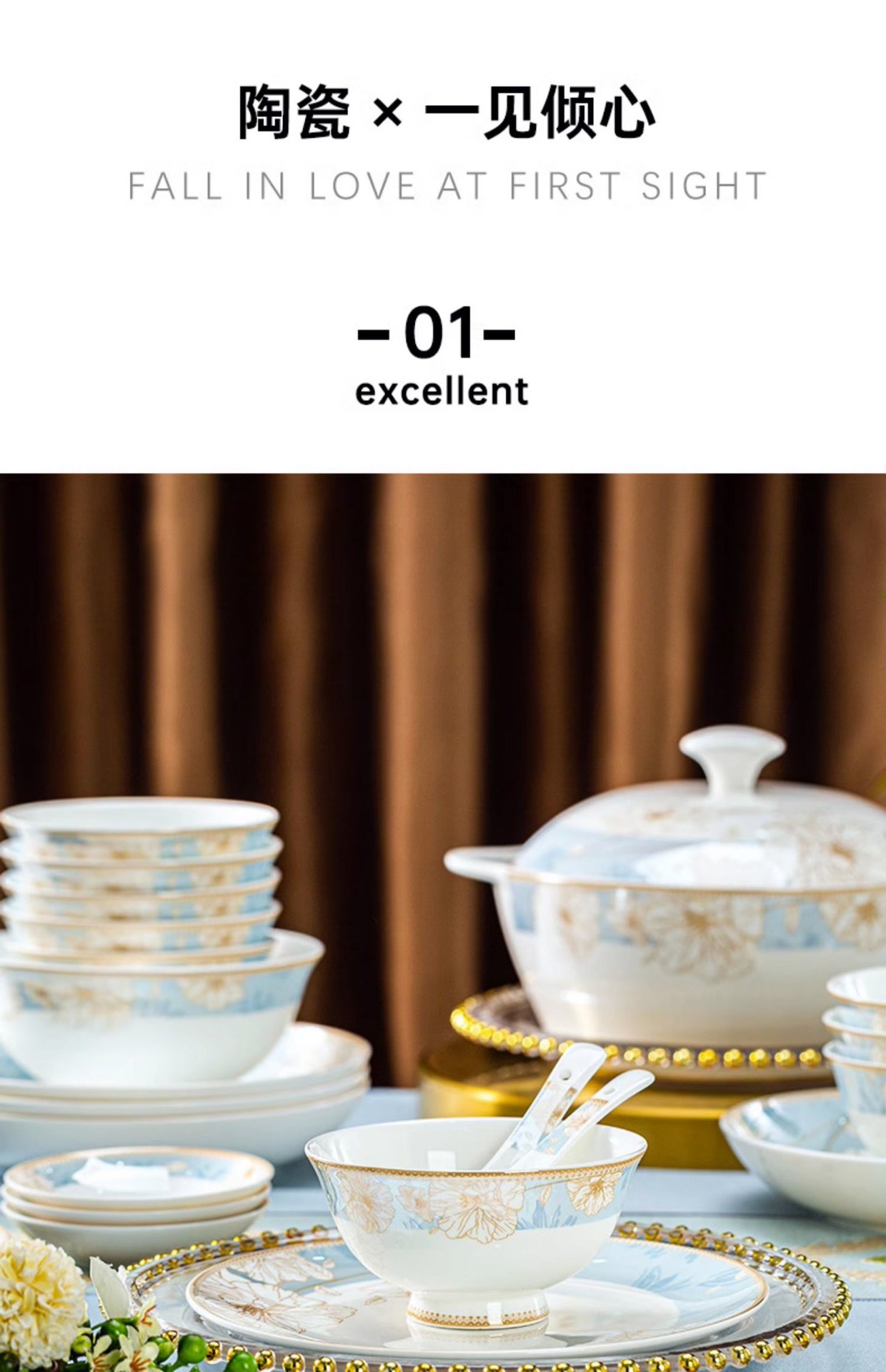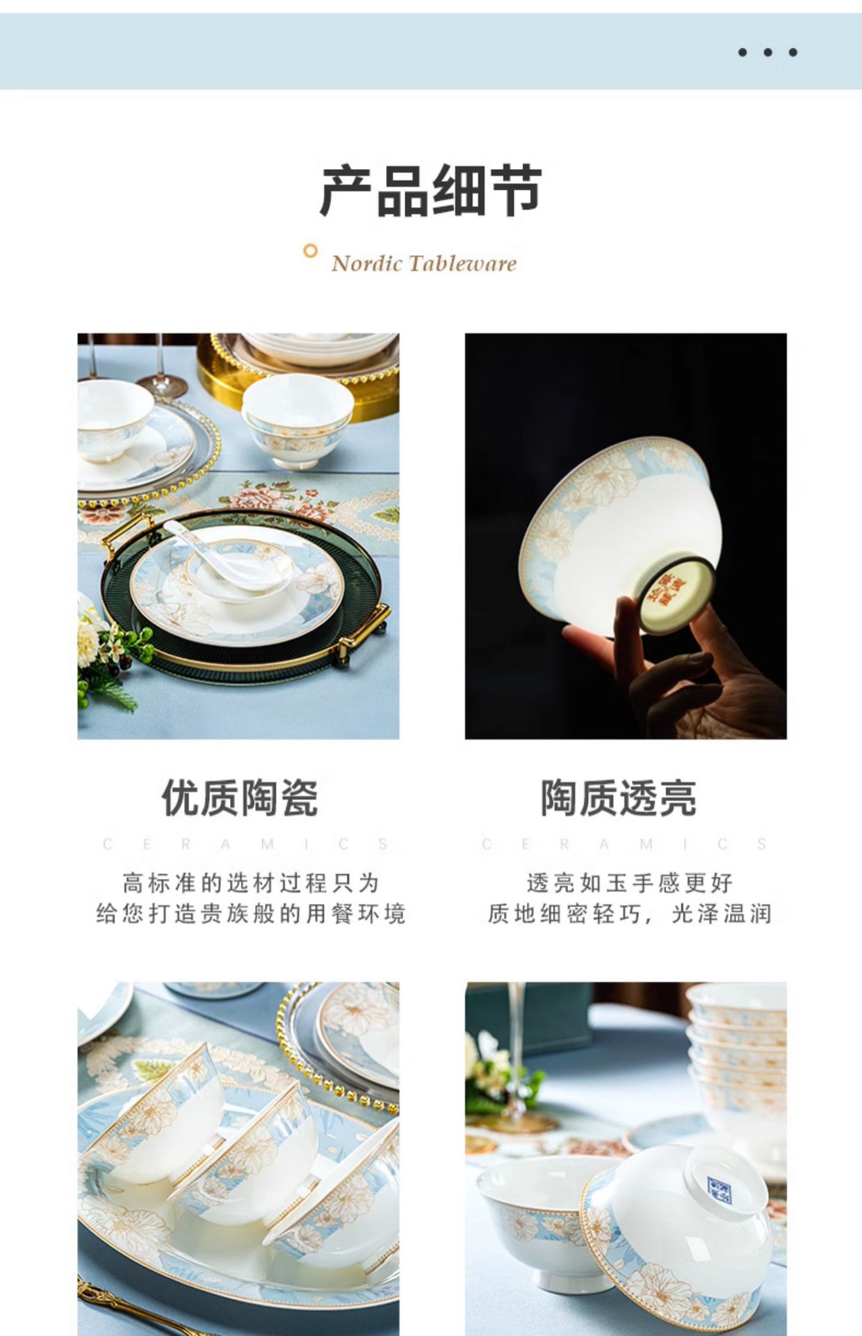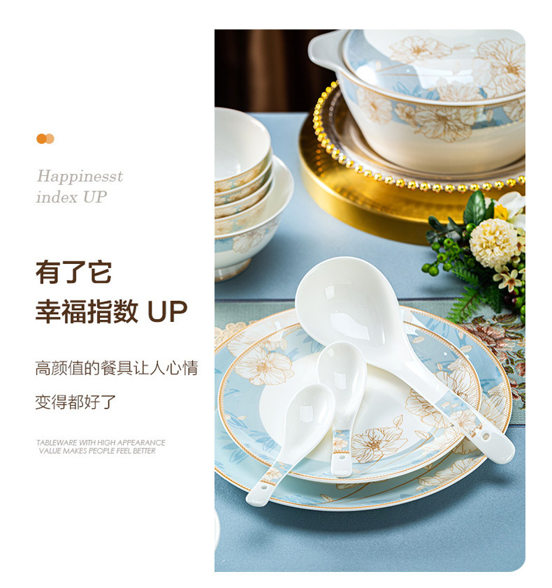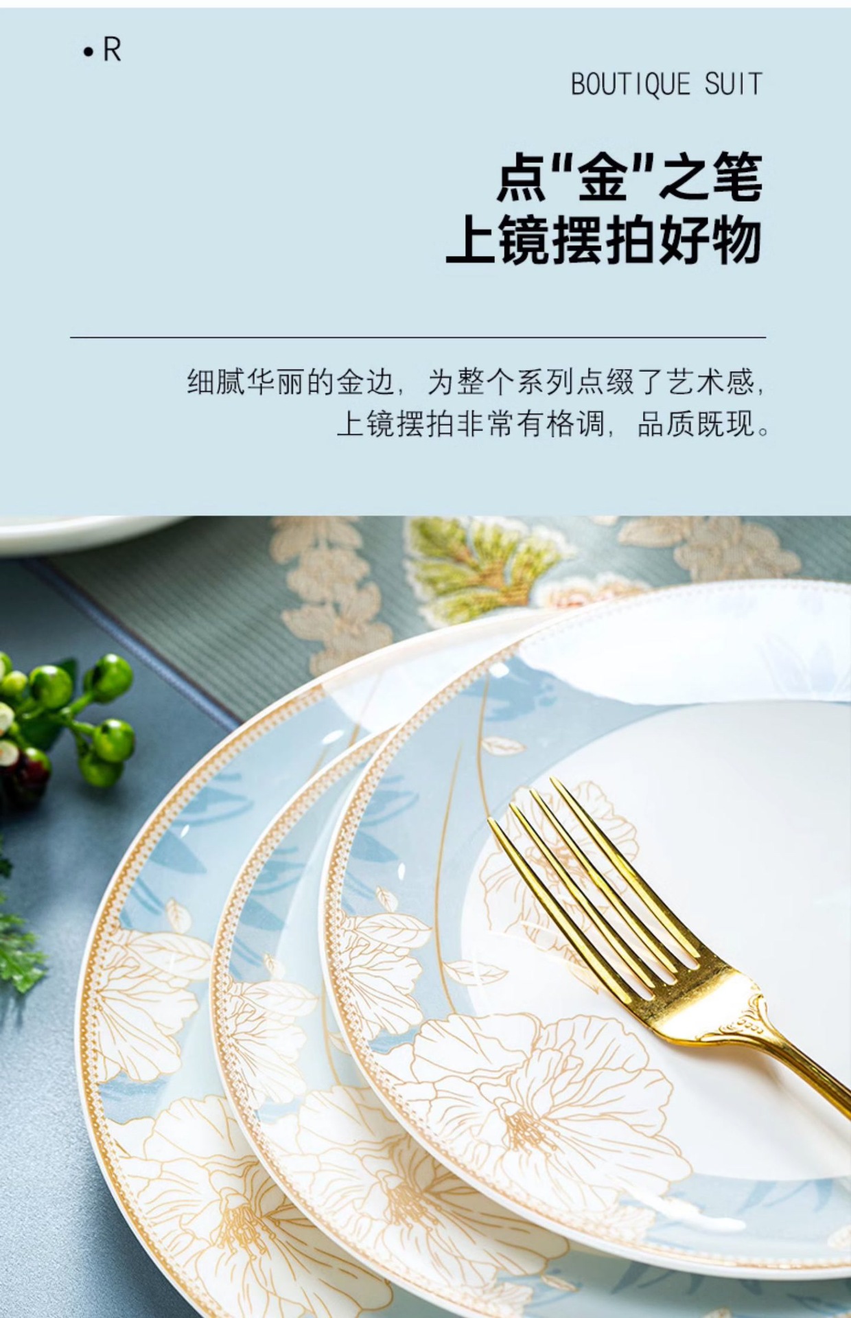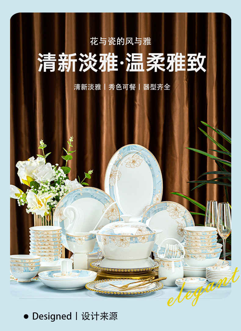 간단한 현대 가벼운 고급 요리와 요리 북유럽 창조적 인 Jingdezhen 세라믹 식기 세트 제공하는 세트 요리 및 요리 홈 선물스토어 가기