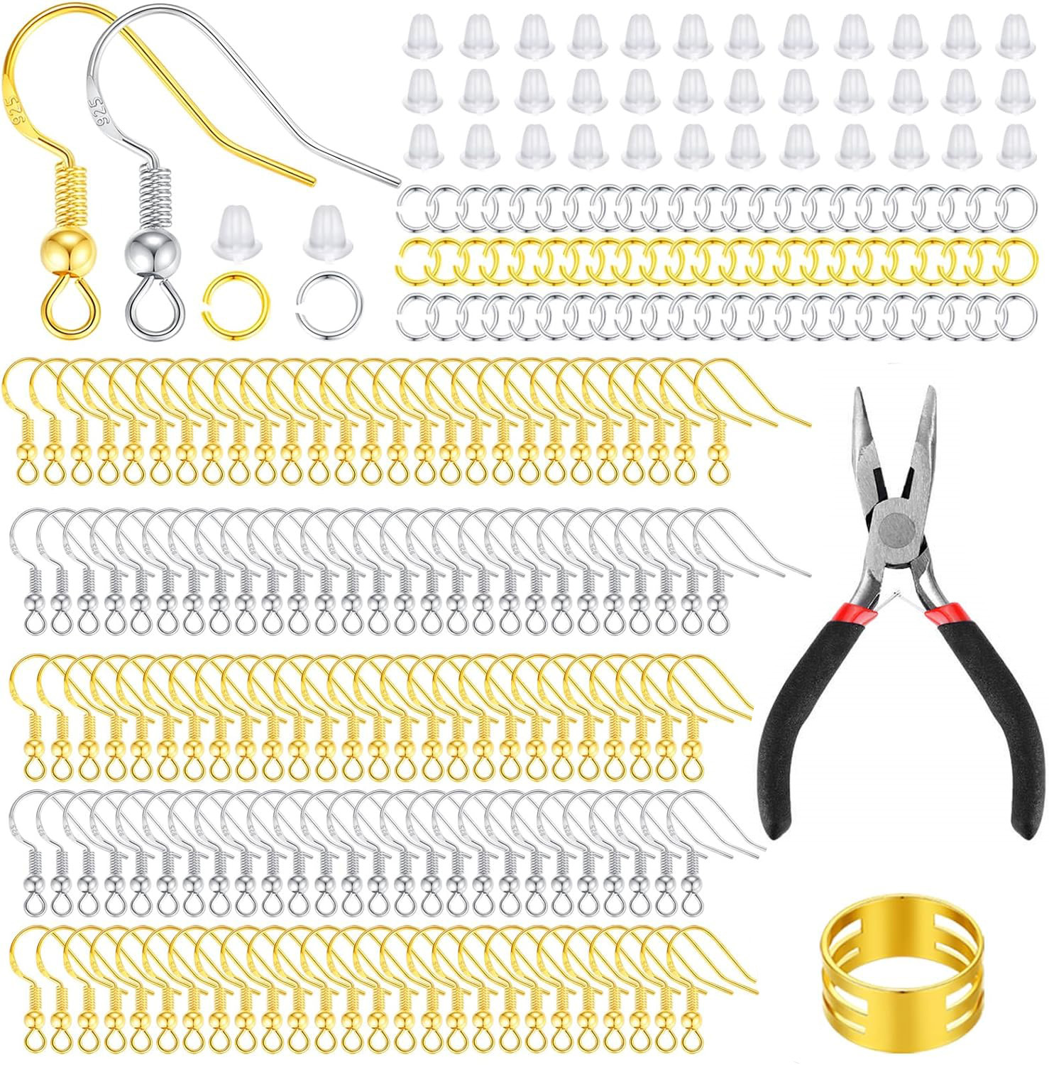 600pc 925 구리 인쇄 실버 도금 귀 후크 구리 귀 후크 작은 단일 링 수제 펜치 세트 DIY 팔찌 목걸이 보석