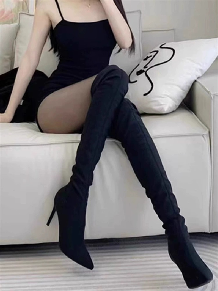 유럽과 미국의 무릎 위 부츠 2025 신상 가을 겨울 여성용 하이힐, 슬림 힐, 뾰족한 앞코, 슬림 부츠, 여성용 스웨이드 부츠스토어 가기