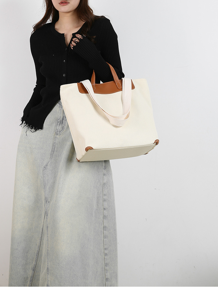 우수한 토트 캔버스 가방 인쇄 가능한 로고 휴대용 여성용 어깨 가방 가죽 캐주얼 올 매치 대용량 통근 회의스토어 가기