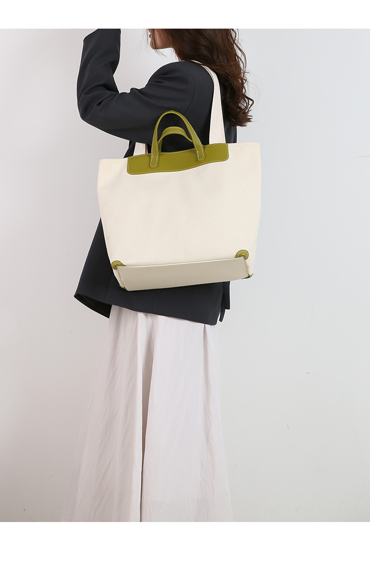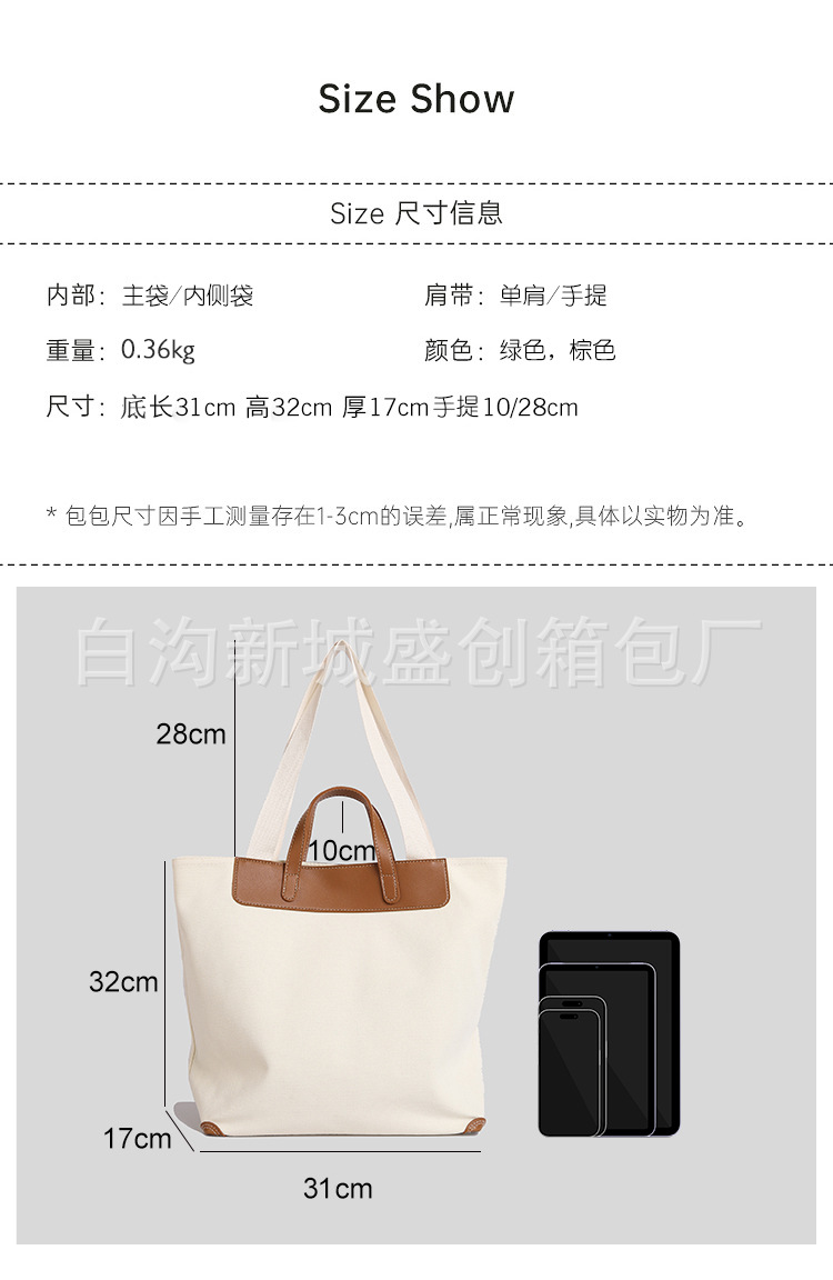 우수한 토트 캔버스 가방 인쇄 가능한 로고 휴대용 여성용 어깨 가방 가죽 캐주얼 올 매치 대용량 통근 회의