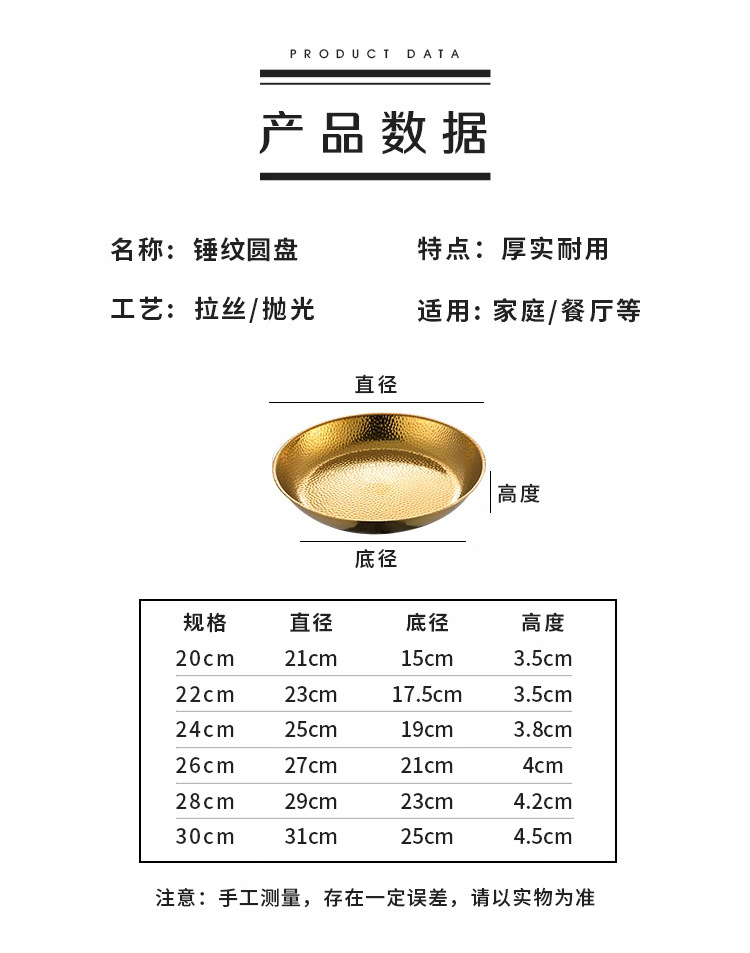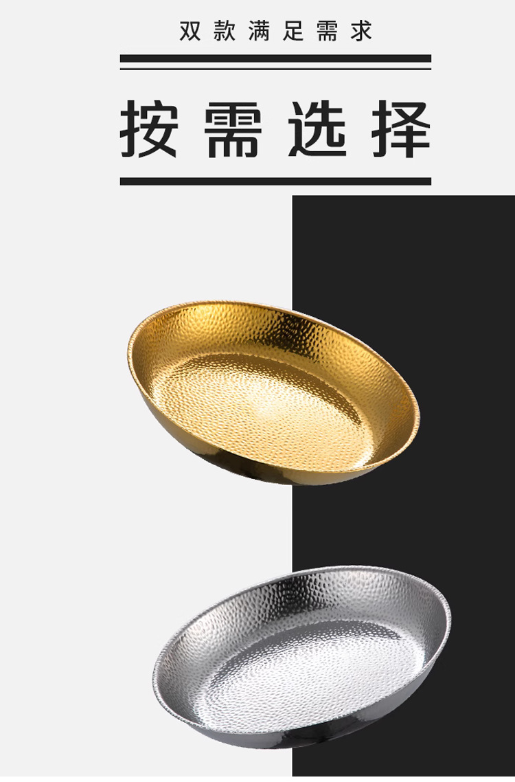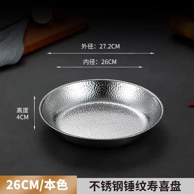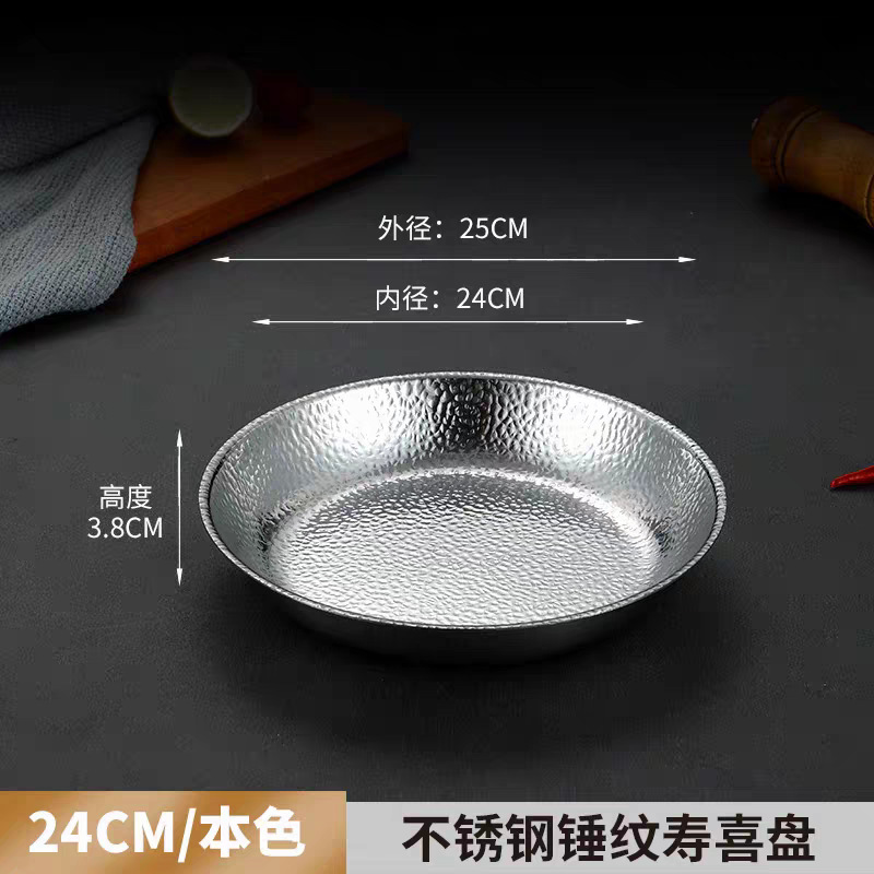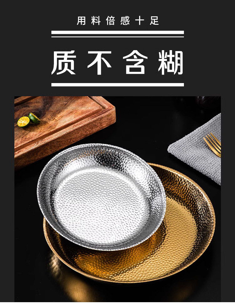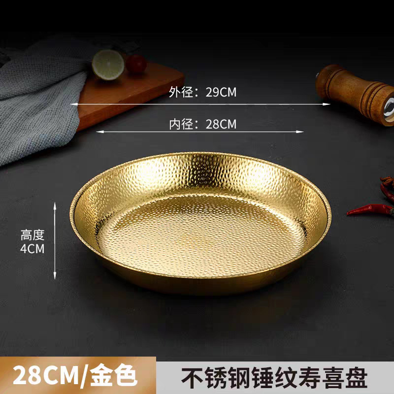 한국식 두꺼운 스테인레스 스틸 플레이트 해머 패턴 디스크 골든 플랫 하단 트레이 과일 플레이트 접시 바베큐 플레이트 웨스턴 푸드 플레이트