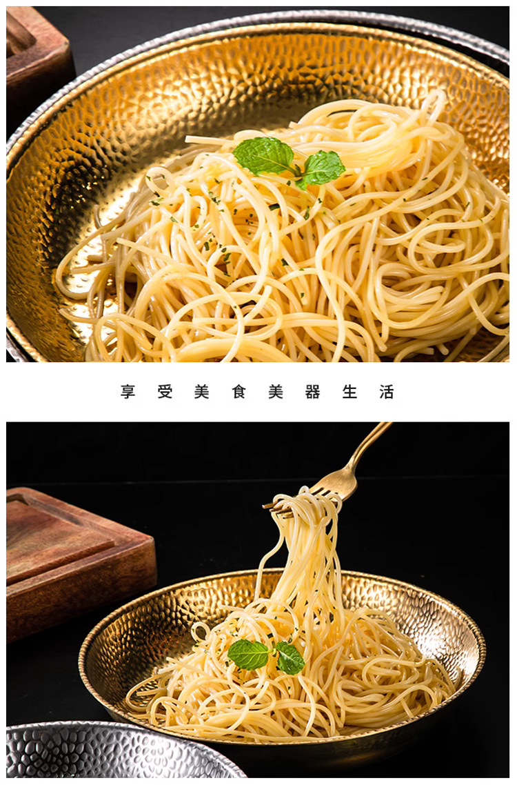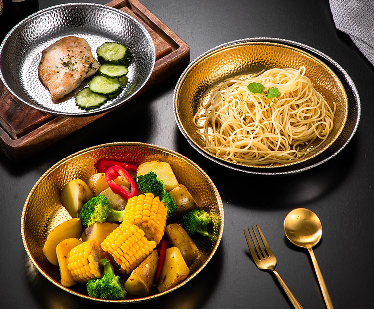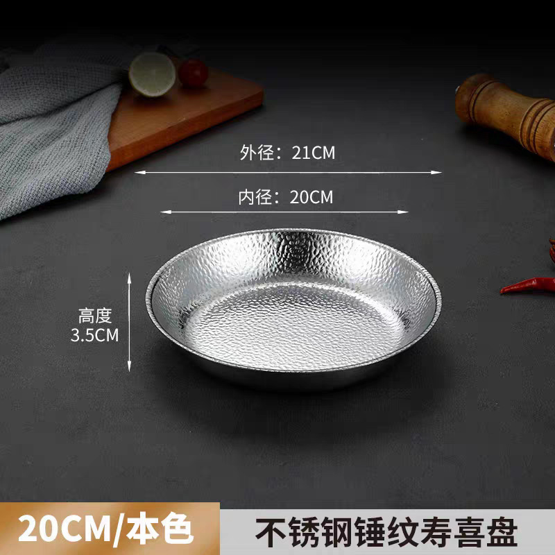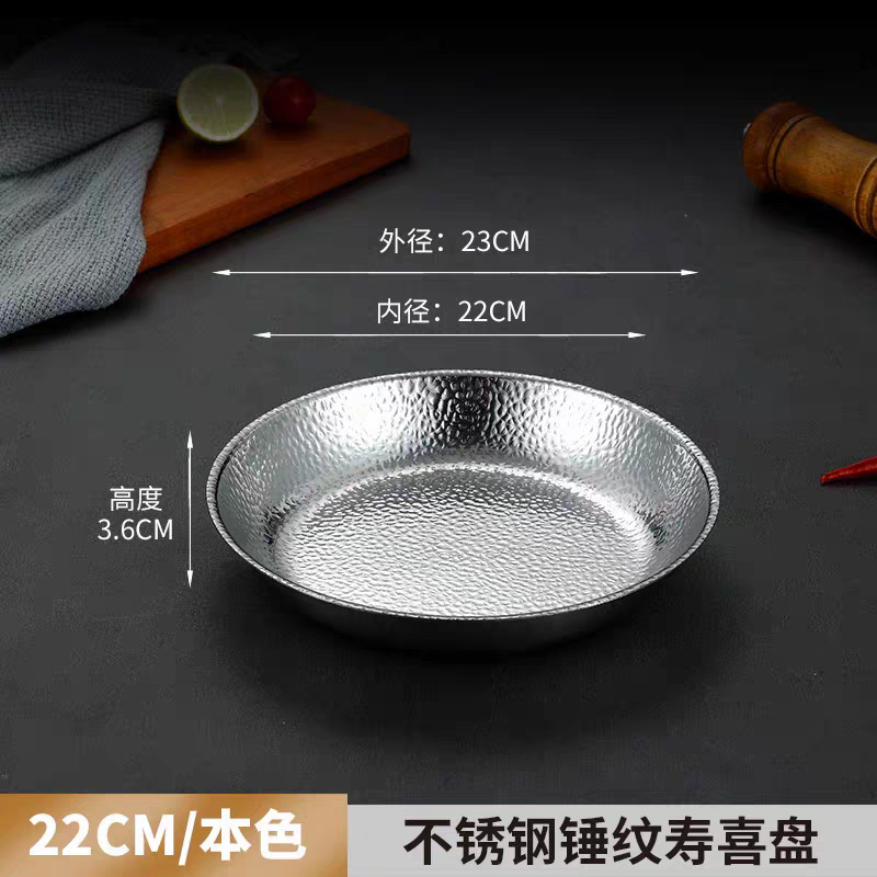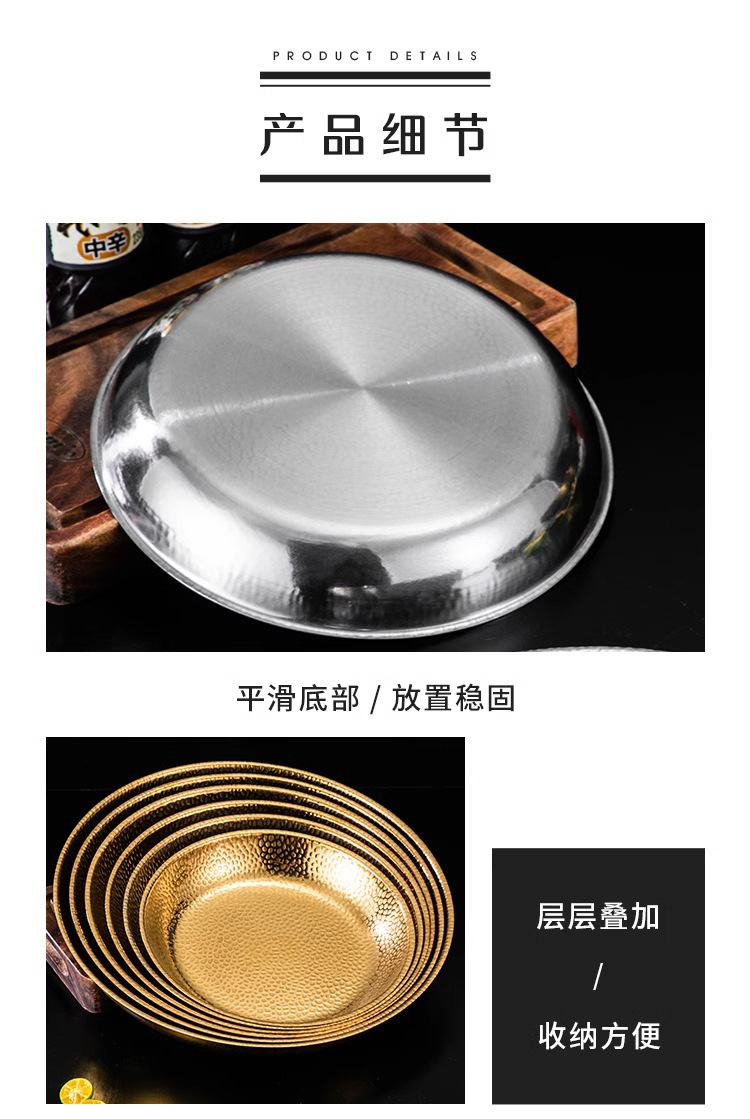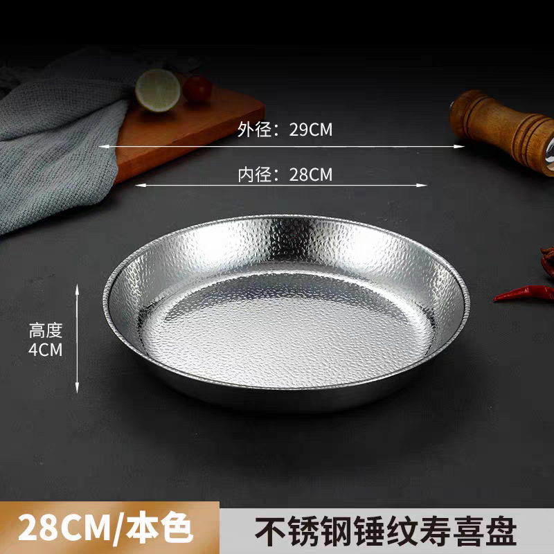 한국식 두꺼운 스테인레스 스틸 플레이트 해머 패턴 디스크 골든 플랫 하단 트레이 과일 플레이트 접시 바베큐 플레이트 웨스턴 푸드 플레이트