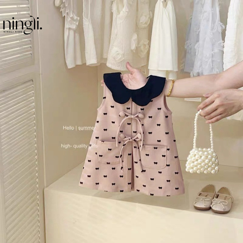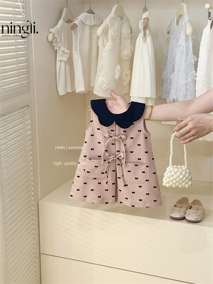 [쿨센스] 소녀의 여름 연꽃 뿌리 핑크 컬러 조끼 원피스 아기의 서양식 귀여운 활 원피스 공주 원피스 트렌디
