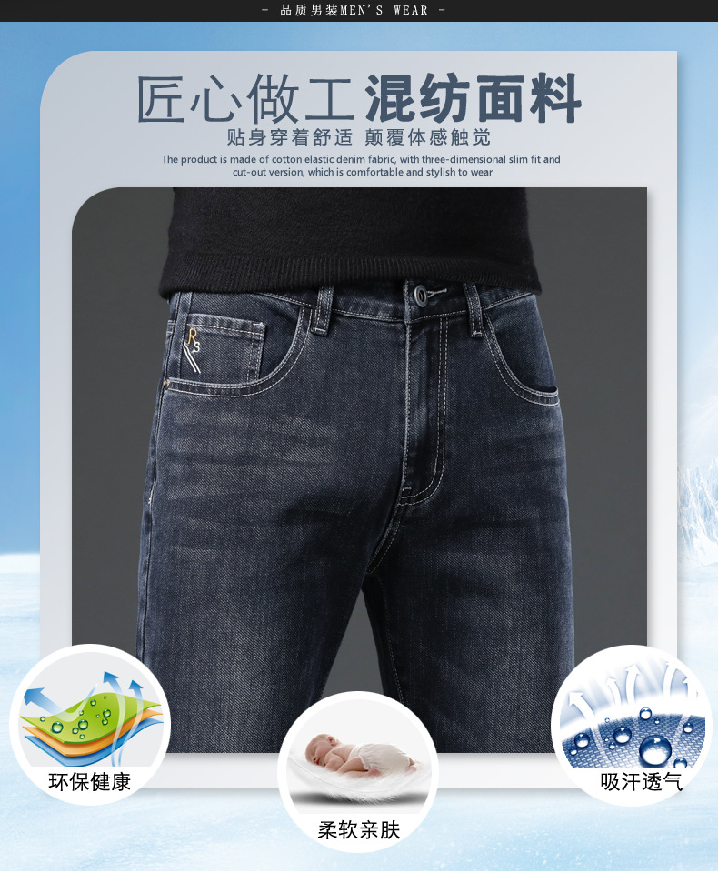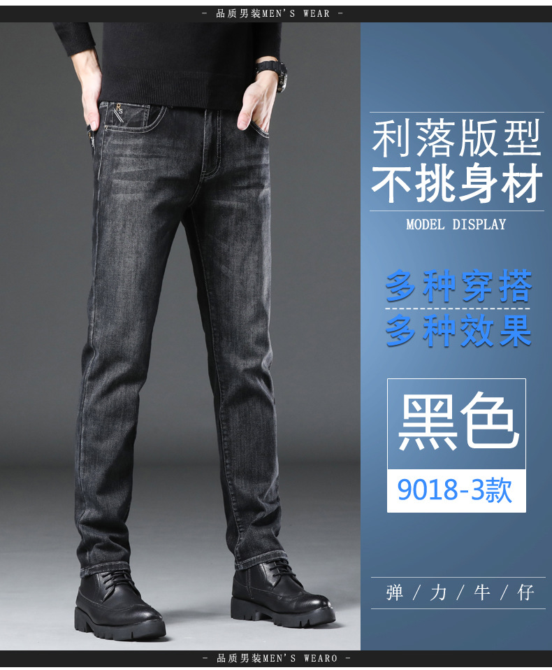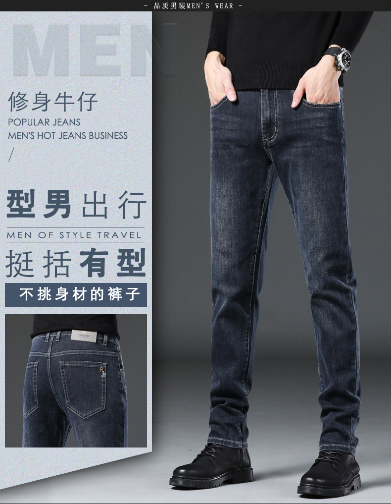 Tmall 뜨거운 가을과 겨울 새로운 청바지 남성 슬림 핏 작은 스트레이트 스트레치 청소년 패션 데님 남성 바지스토어 가기