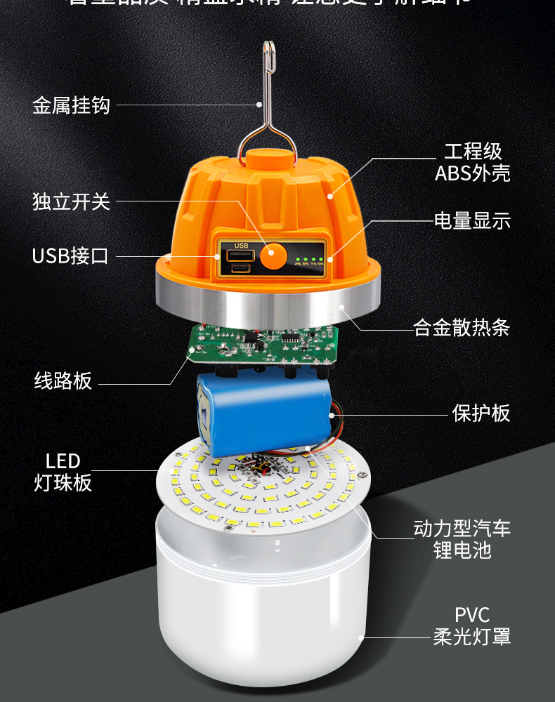 • 매우 밝은 모델 3000W, 배터리 수명 68H, 조명 130㎡USB가 포함된 전자 디스플레이