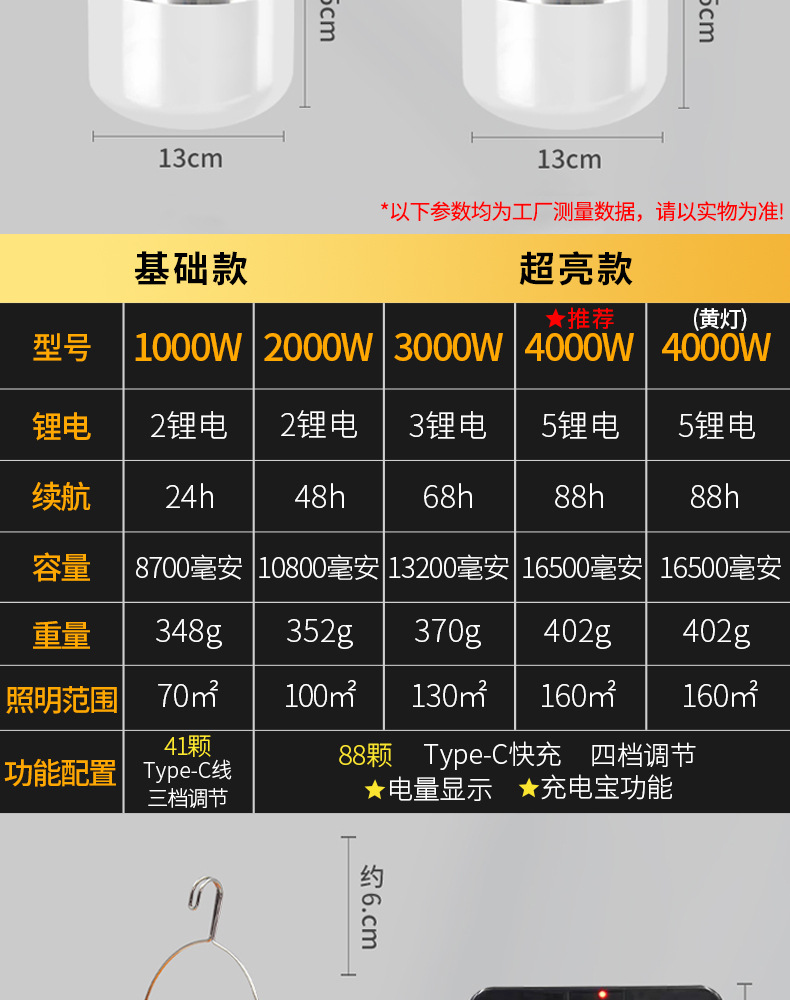 • 매장 관리자가 추천하는 매우 밝은 4000W 5리튬 배터리, 배터리 수명 88H, USB가 포함된 전자 디스플레이