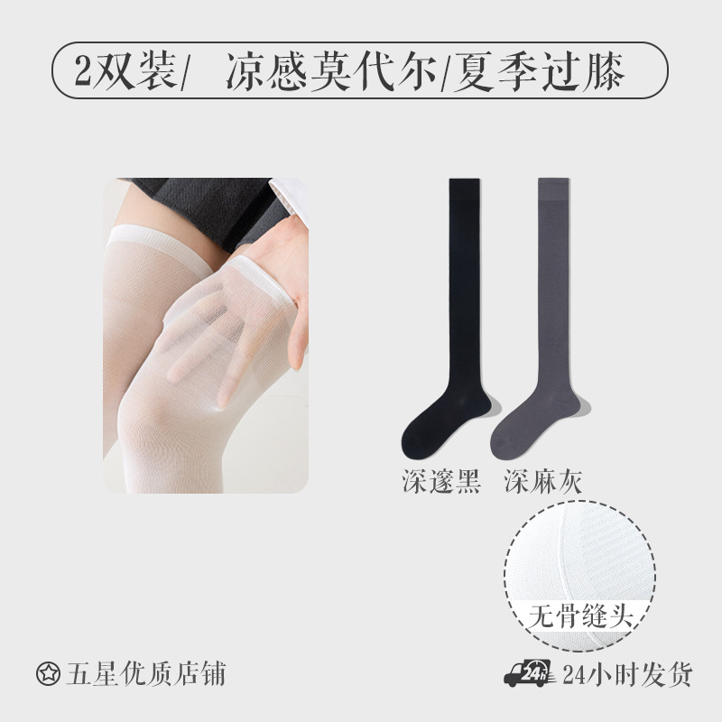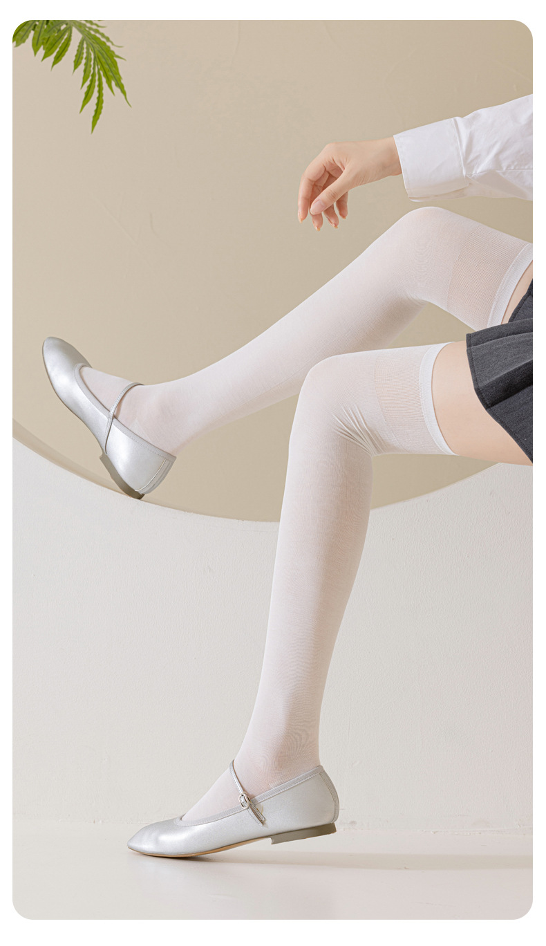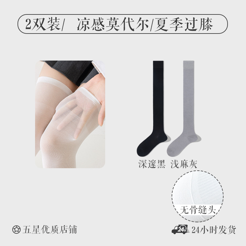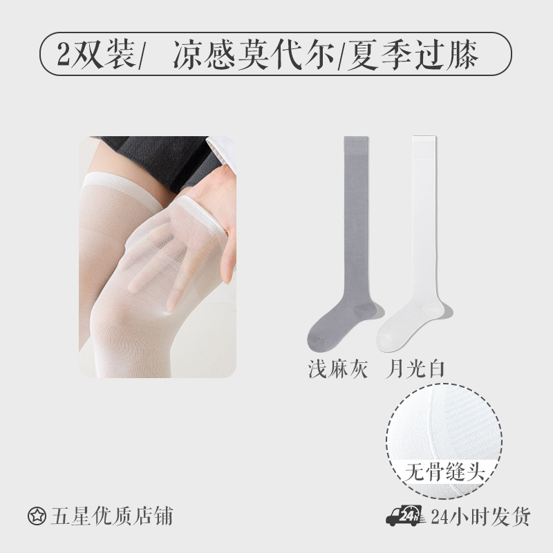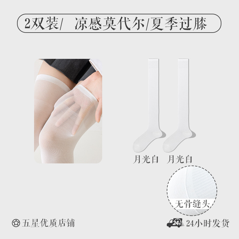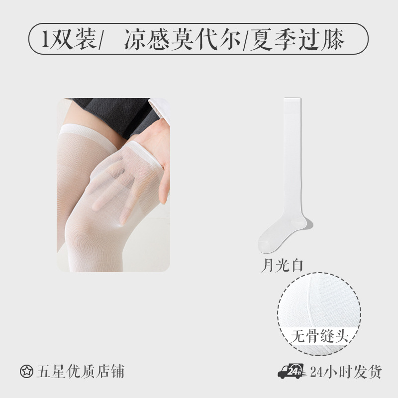 모달 스타킹 어린이 봄과 가을 얇은 통기성 무릎 양말 흰색 뼈없는 슬리밍 여름 허벅지 양말