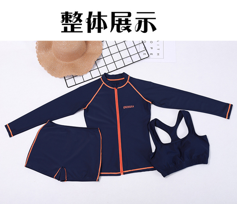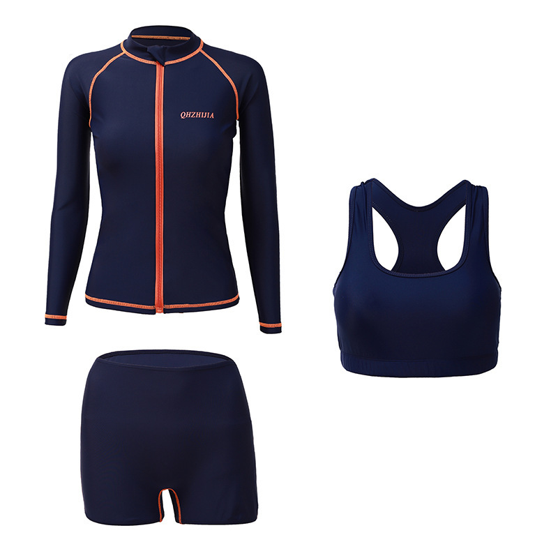 새로운 다이빙 세트 여성 3 피스 세트 보수적 인 배꼽 커버 슬리밍 긴팔 서핑 스노클링 해파리 선 스크린 수영복스토어 가기
