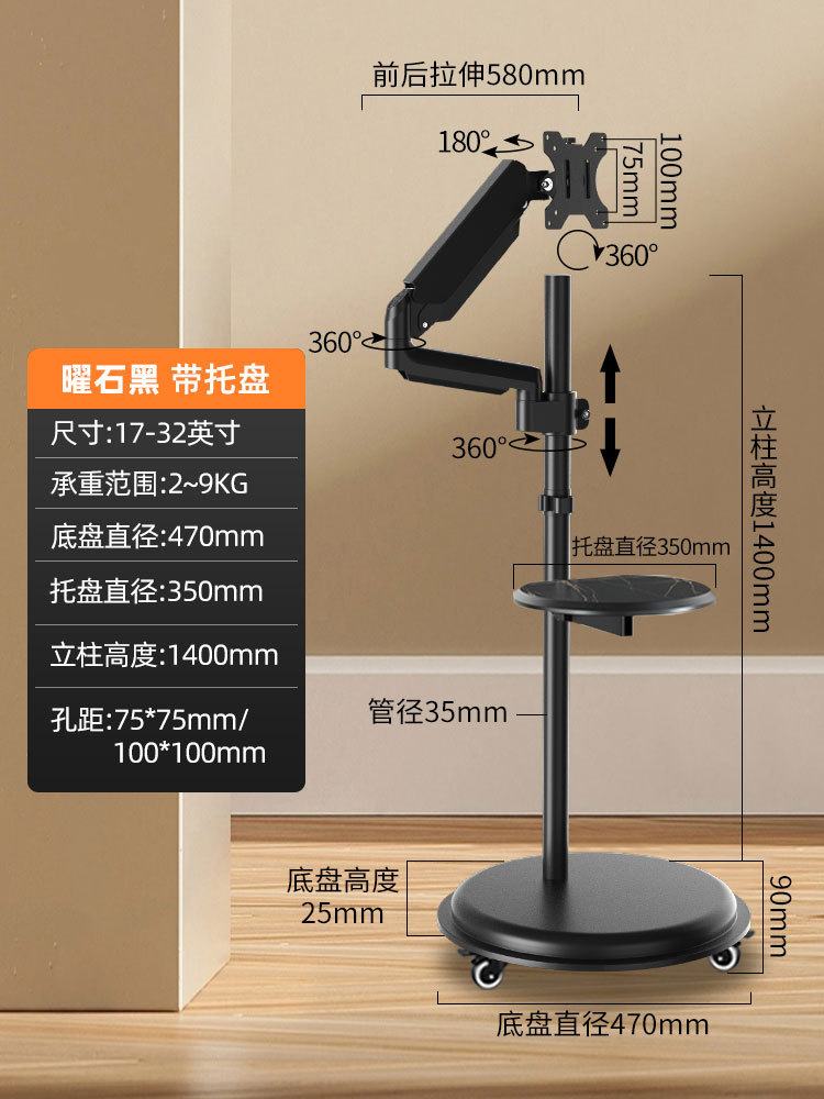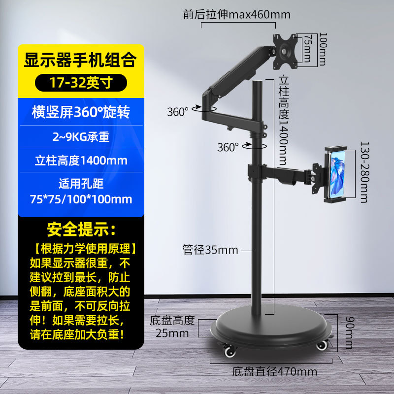 • 17-32.2inch 세대 공기압 캔틸레버 블랙 모바일 모니터 + 휴대폰/태블릿 클립