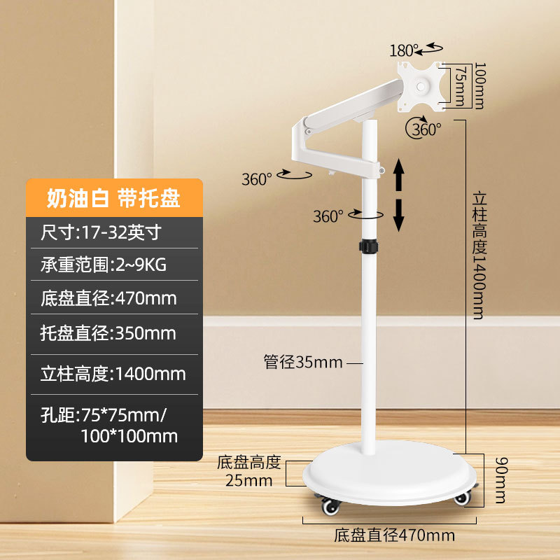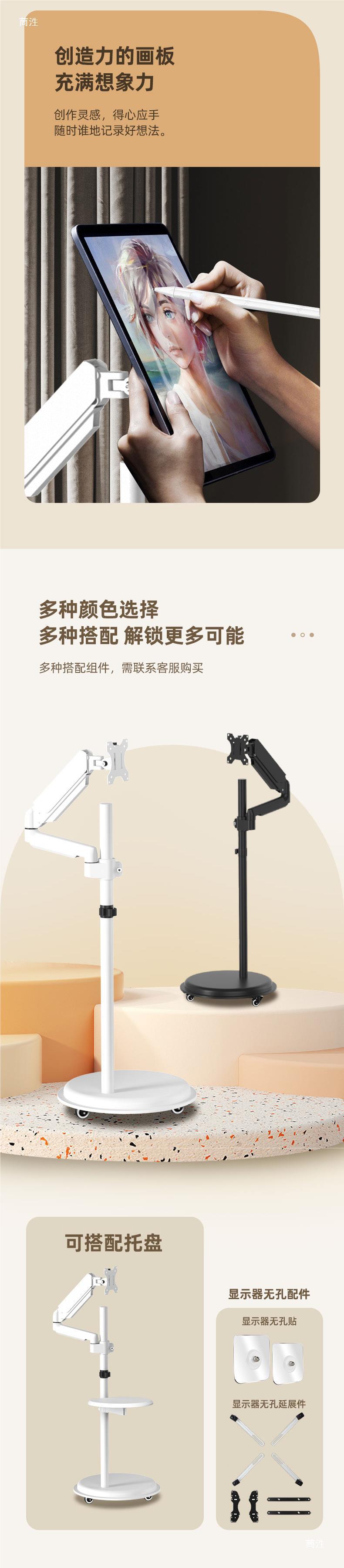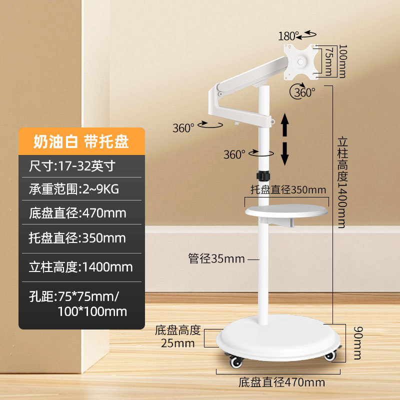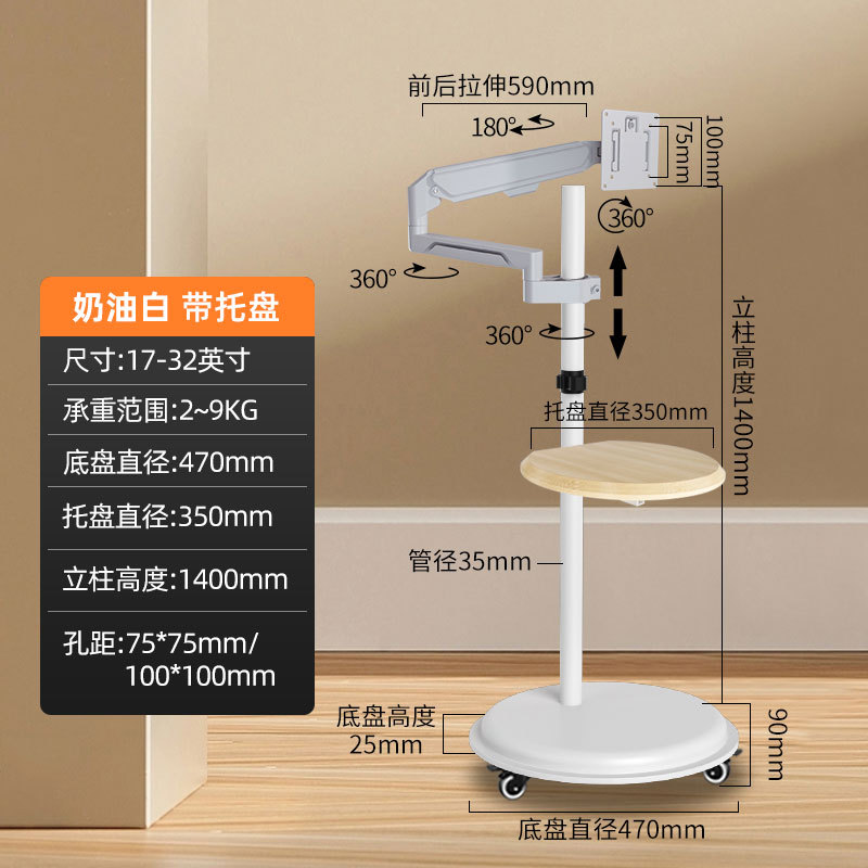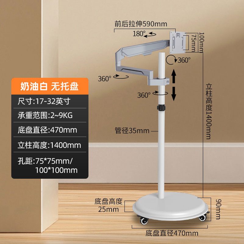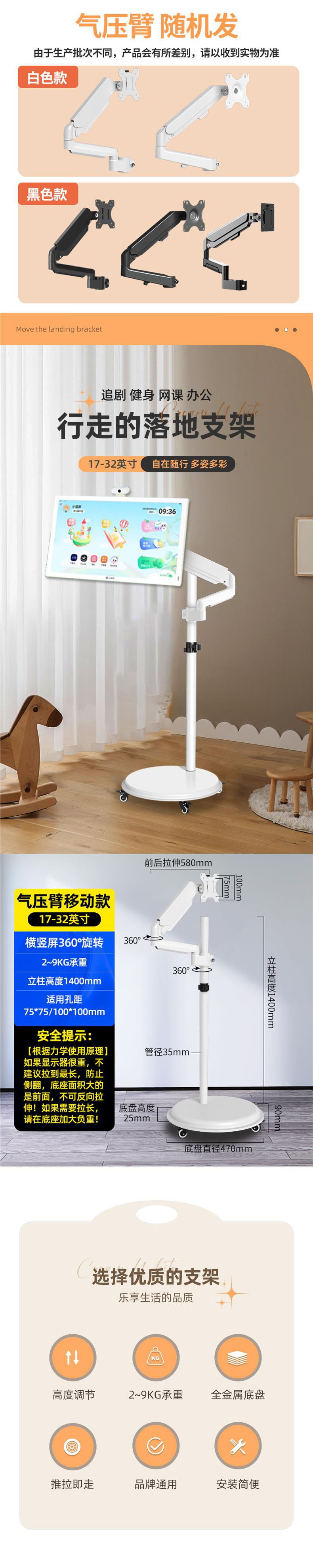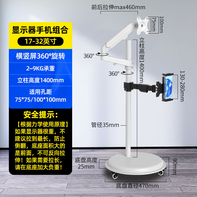 • 17-32.2inch 세대 공기압 캔틸레버 화이트 모바일 모니터 + 휴대폰/태블릿 클립