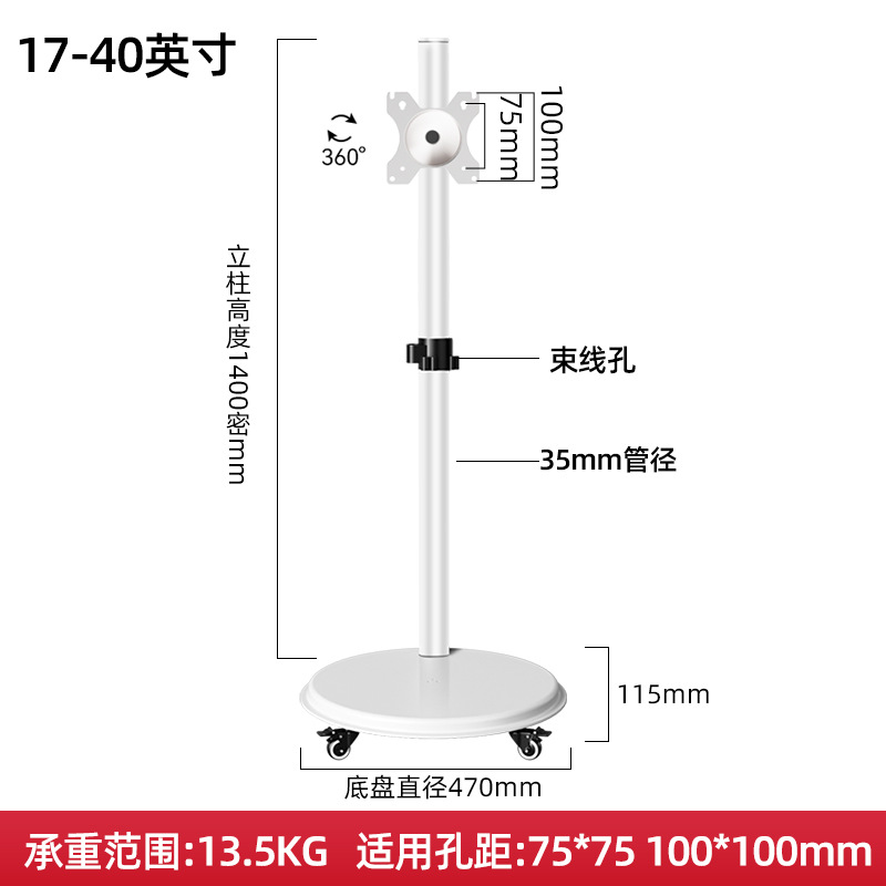 • 17-40inch 일반 올 화이트 플로어 스탠드 [바퀴 포함]