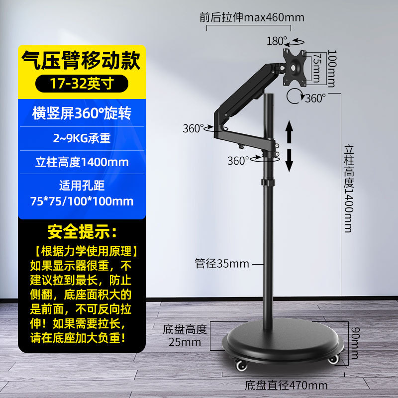 • 17-32.2inch 세대 공기압 캔틸레버 블랙 모바일 싱글 스크린 모델