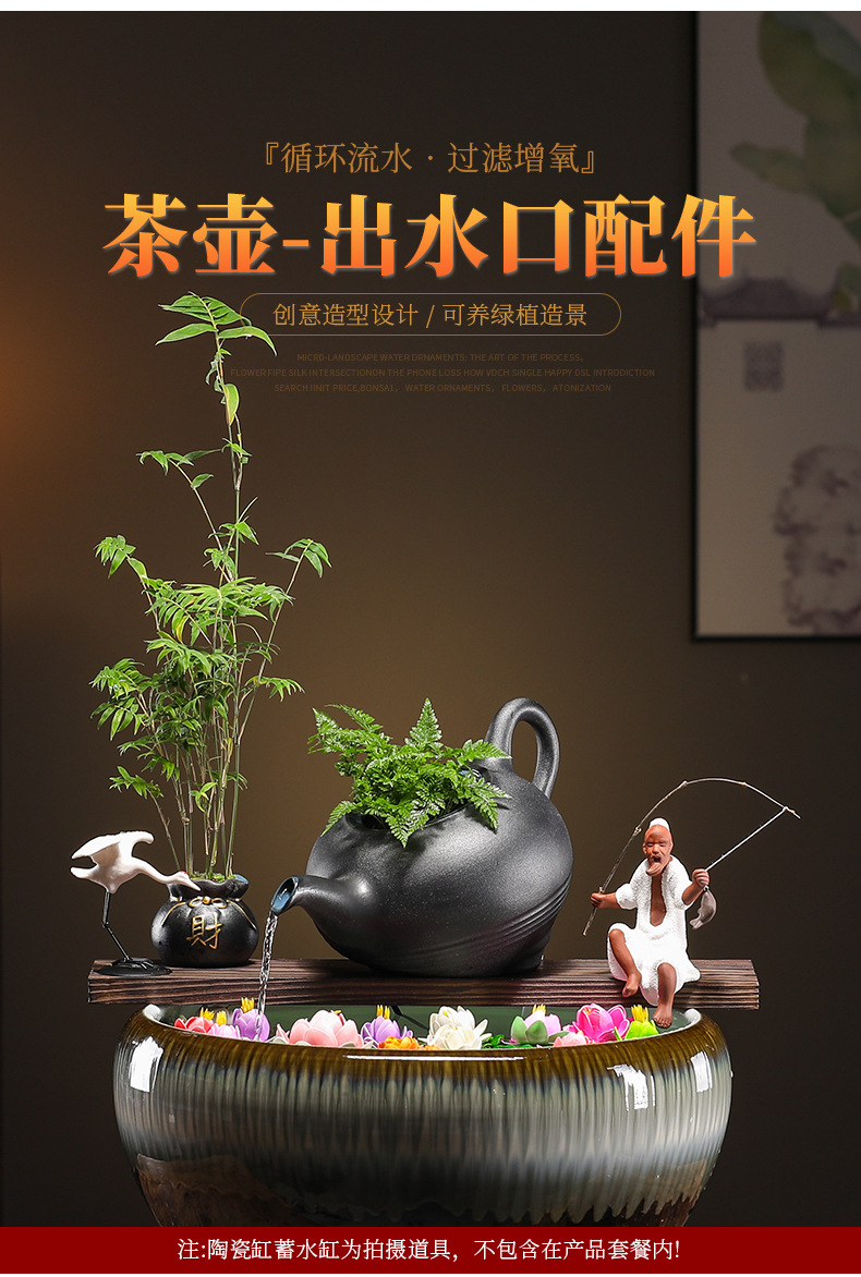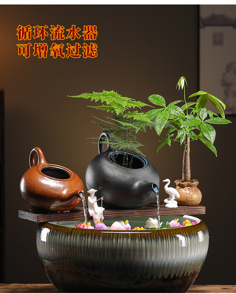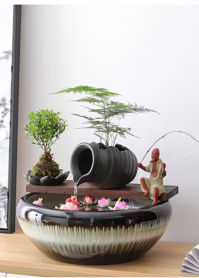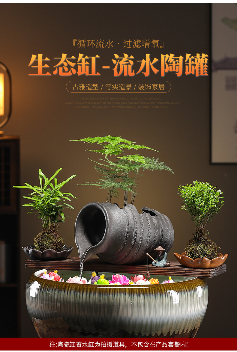 크리 에이 티브 순환 물 점토 냄비 생태 탱크 액세서리 물고기 조경 안뜰 실내 비 커튼 물고기 탱크 흐르는 물 장식품 산소 공급