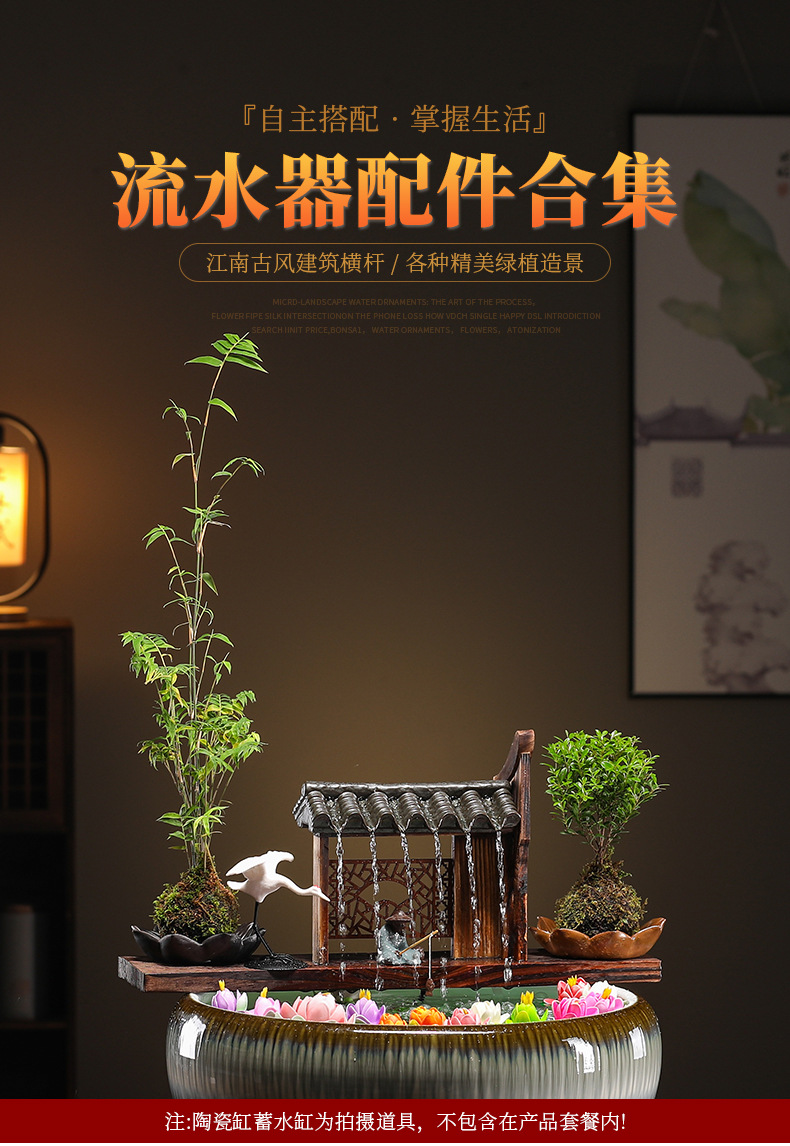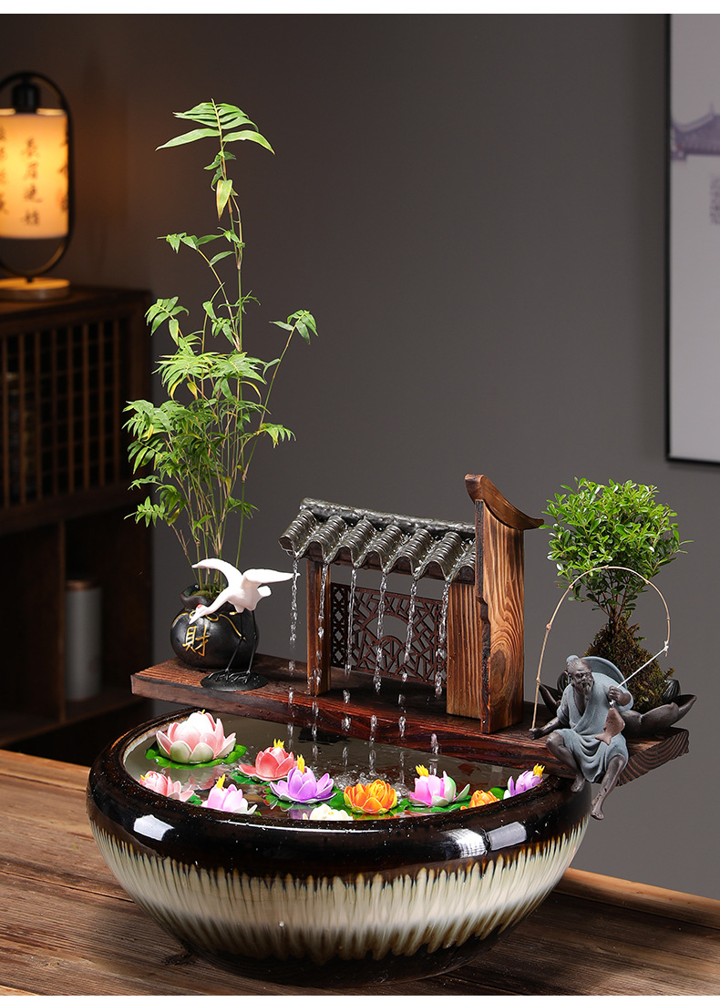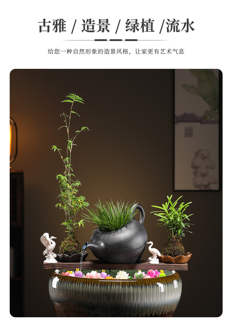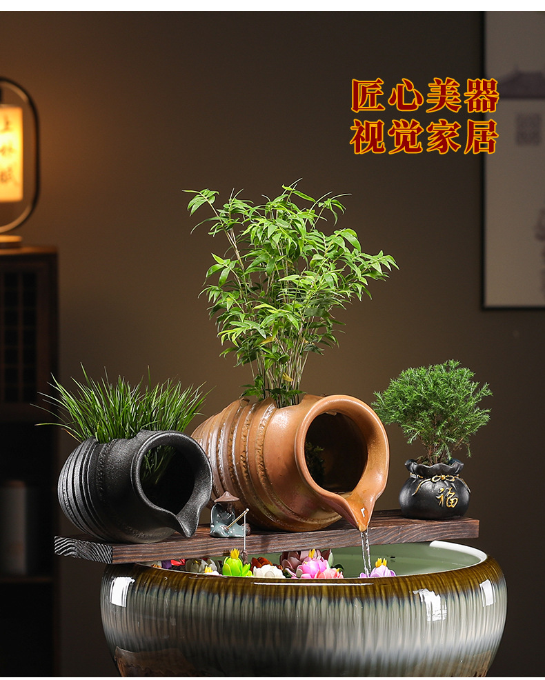 크리 에이 티브 순환 물 점토 냄비 생태 탱크 액세서리 물고기 조경 안뜰 실내 비 커튼 물고기 탱크 흐르는 물 장식품 산소 공급