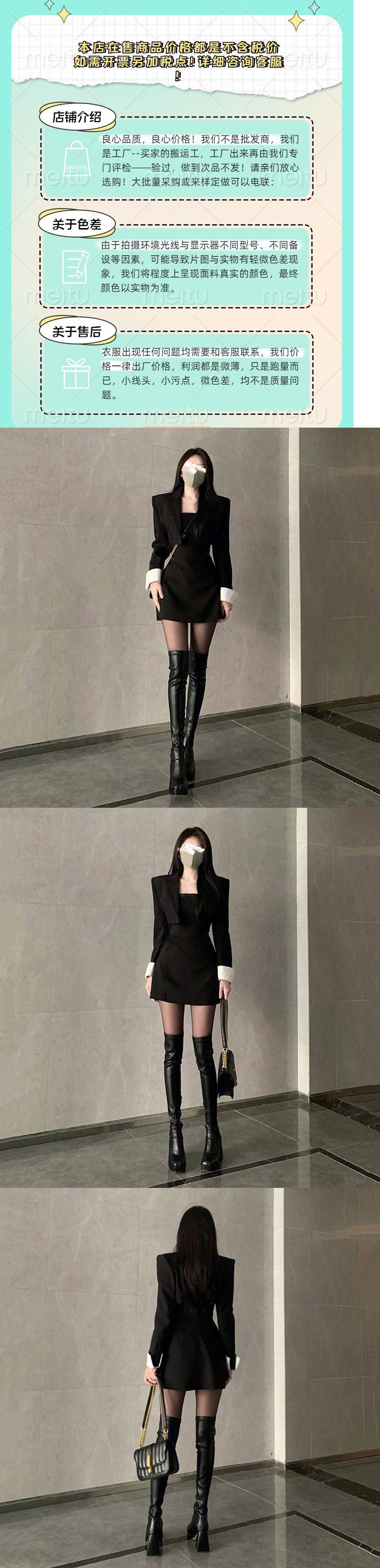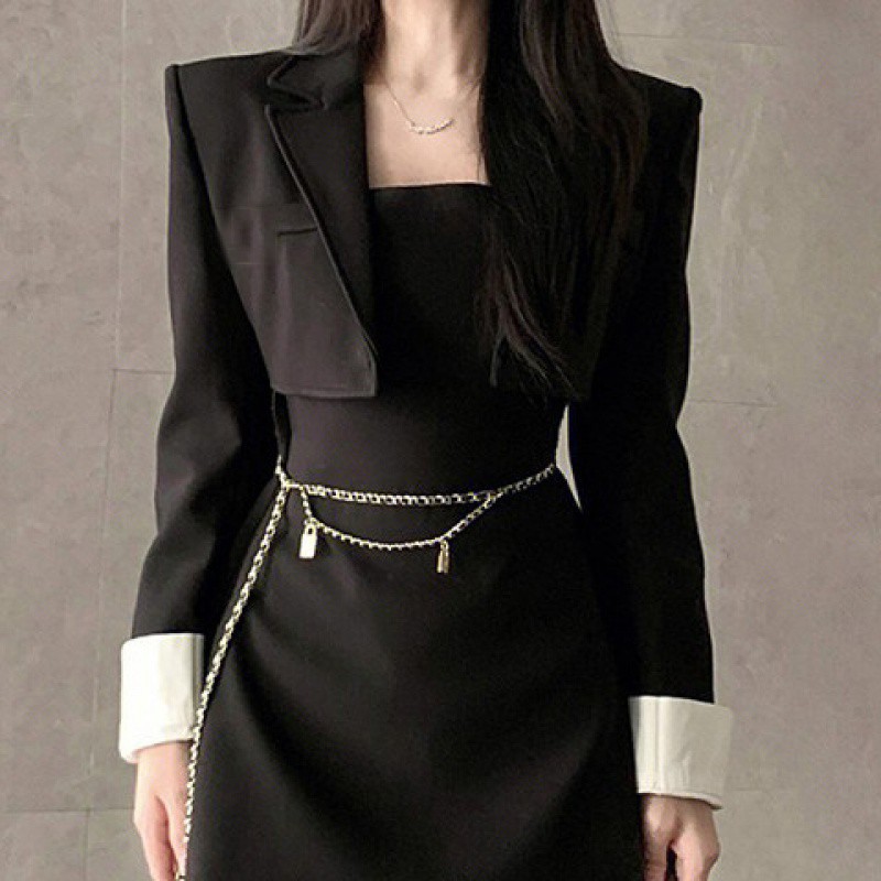 블랙 로얄 자매 스타일 작은 세트 원피스 여성의 봄 새로운 슬림 핏 타이트 허리 엉덩이 짧은 치마 패션 투피스 치