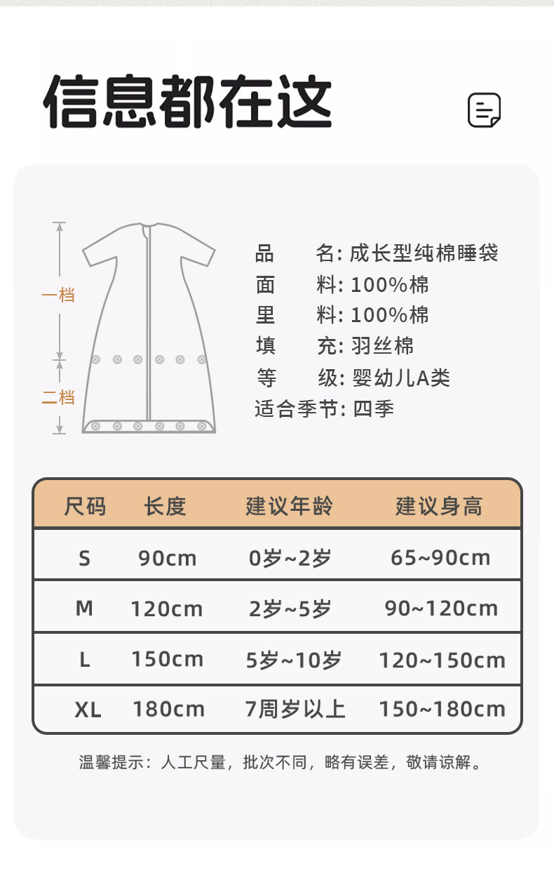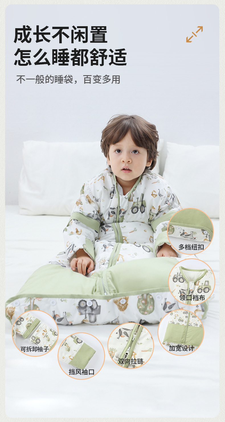 신형 아기 A급 순면 침낭 봄 가을 겨울 얇은 유아 어린이 두꺼운 방한 이불