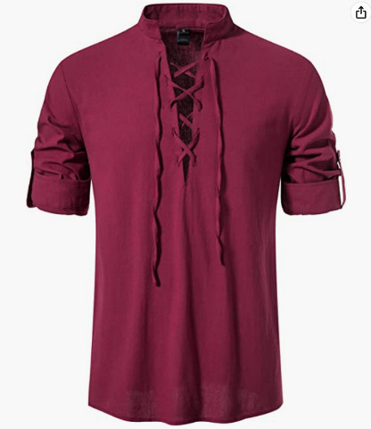 중세 남성면 및 리넨 헨리 셔츠 긴팔 히피 캐주얼 비치 칼라 셔츠 유럽 및 미국 국경 간 서랍 셔츠스토어 가기