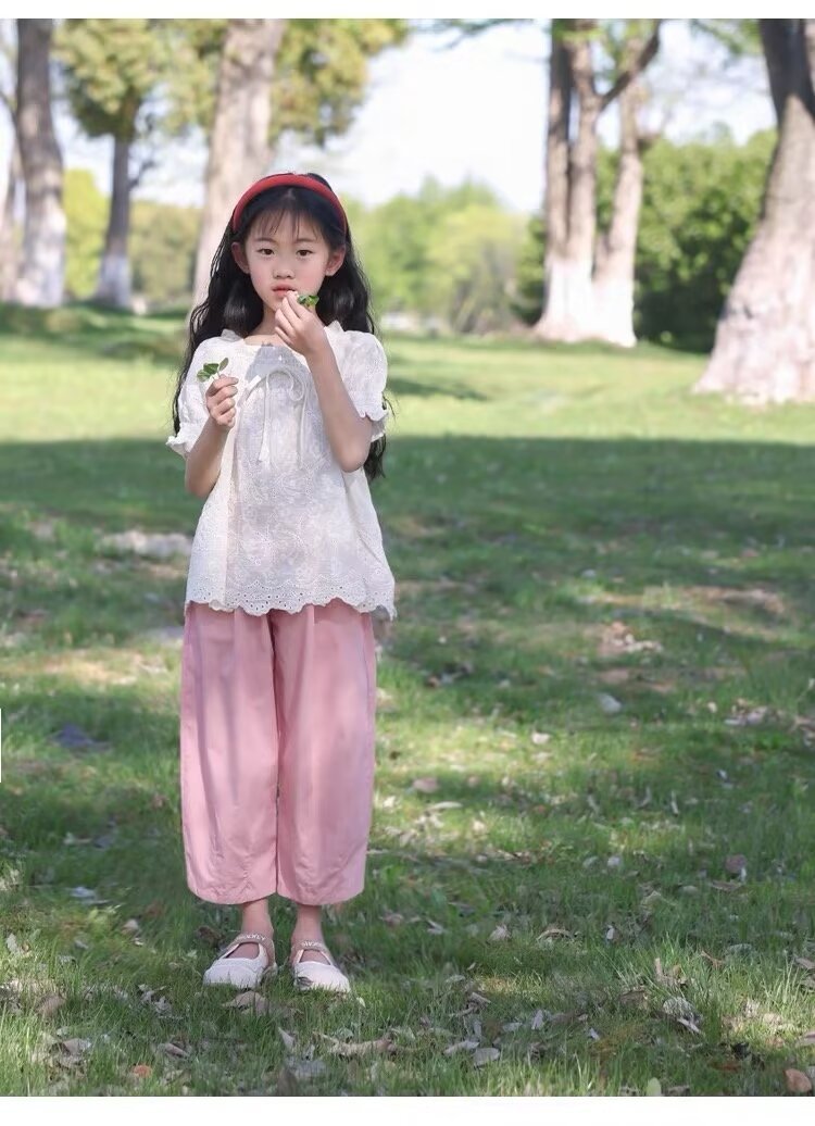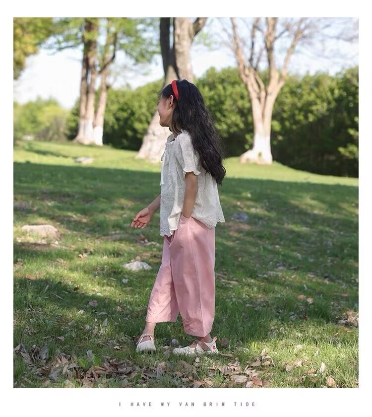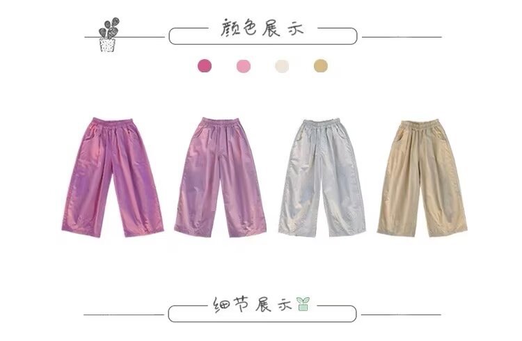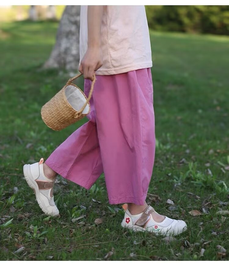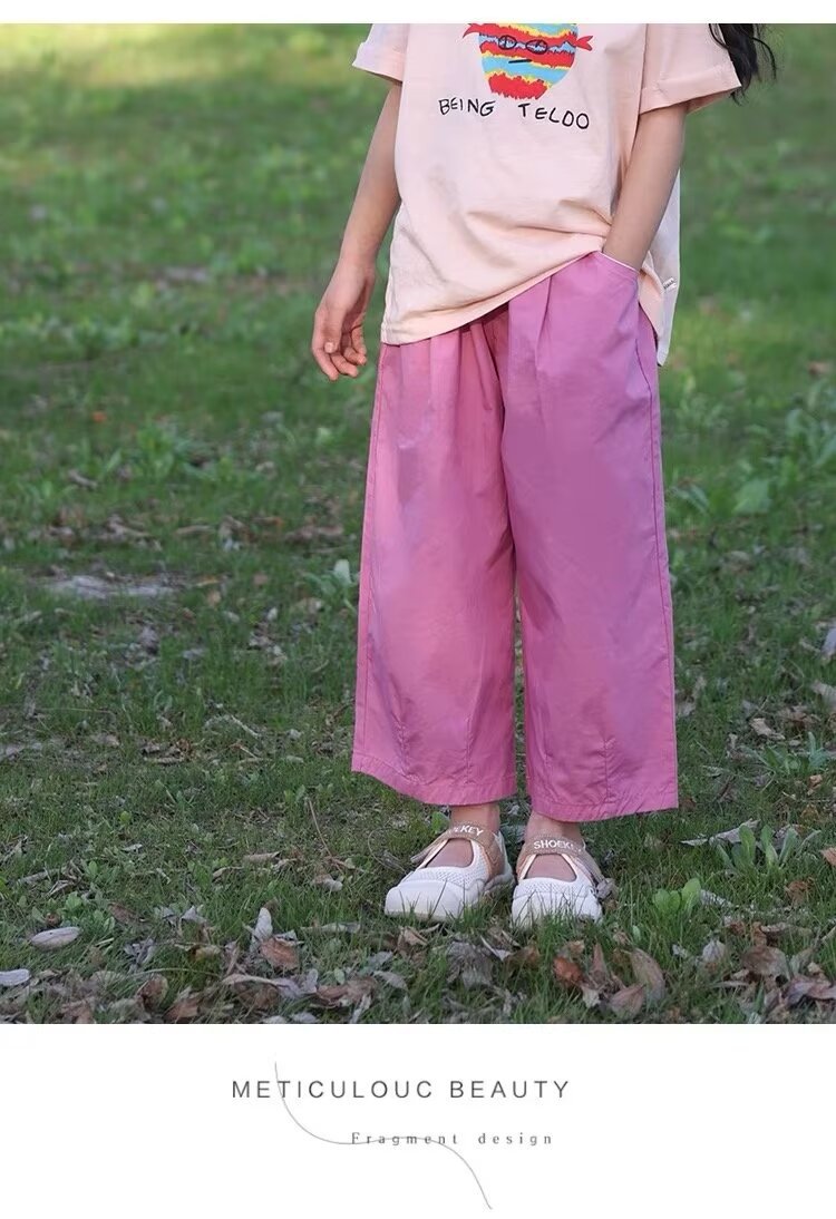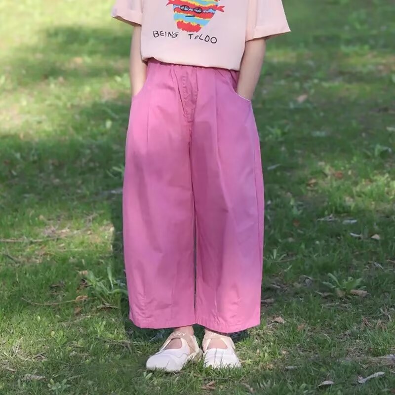 여자 여름 얇은 어린이 캐주얼 와이드 레그 팬츠 캐주얼 바지 2024 새로운 아기 소녀 느슨한 모기 방지 바지 유행스토어 가기