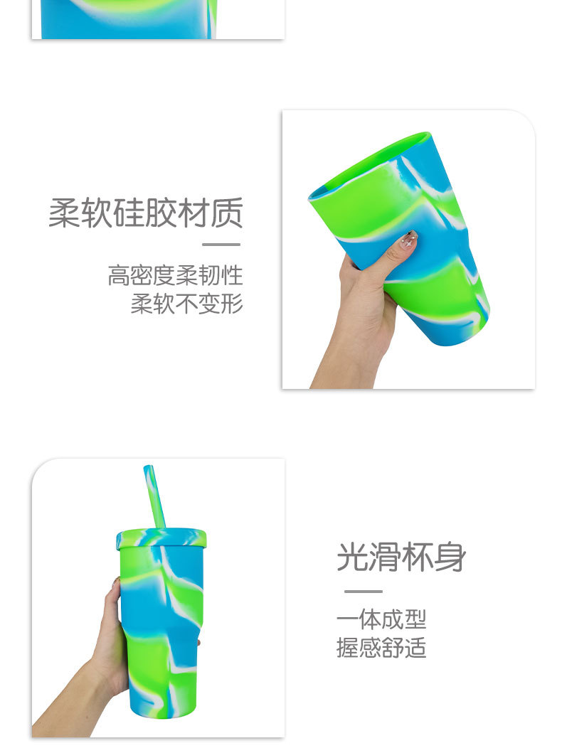 아마존 베스트 셀러 950ml 혼합 컬러 실리콘 컵 대용량 실리콘 컵 밀짚 휴대용 드롭 방지 워터 컵